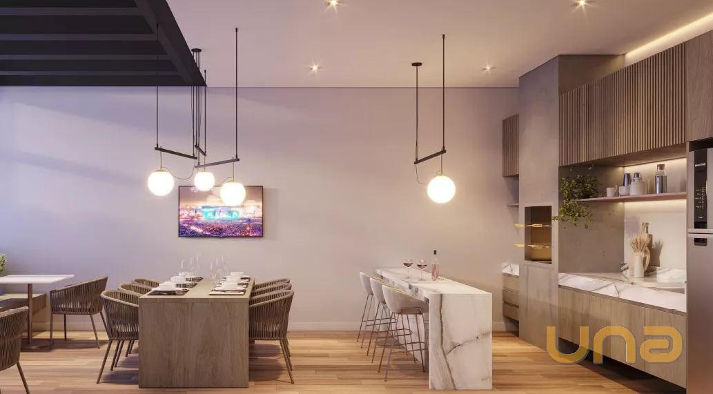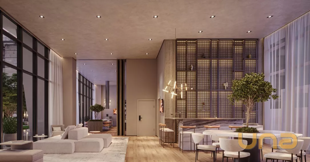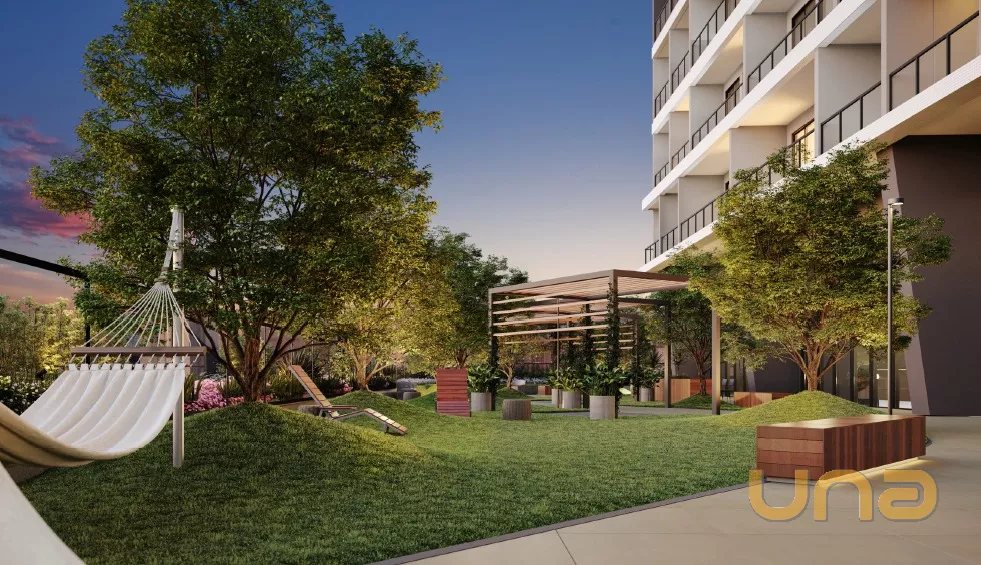 Com área privativa de 23 m, e área total de 36 m, ele é dividido sala com varanda, 01 quarto, cozinha e 01 banheiro.