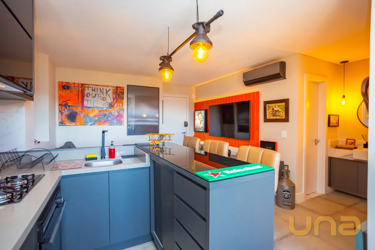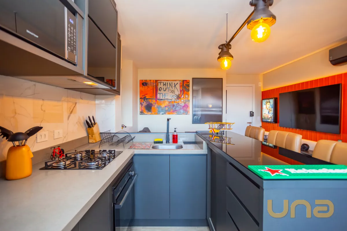 Estas palavras definem este apê de 41,50m² que surpreende na riqueza de detalhes e na decoração de muito bom gosto! A planta original foi alterada ainda na construção para ampliar o ambiente social de sala e cozinha, além disso, o imóvel está todinho mobiliado, pronto para a mudança e conta com armários sob medida, uma ampla sacada com churrasqueira á carvão com pia de apoio, 01 dormitório e 01 banheiro social.