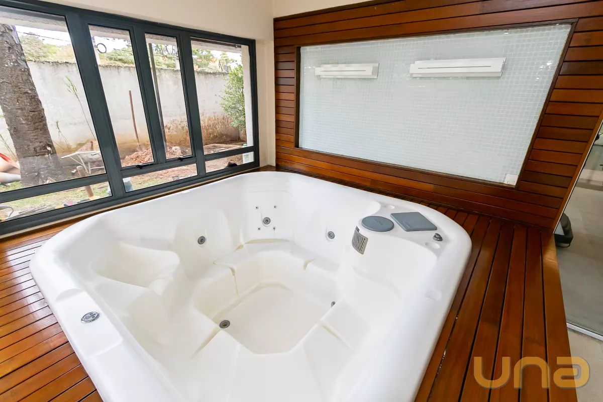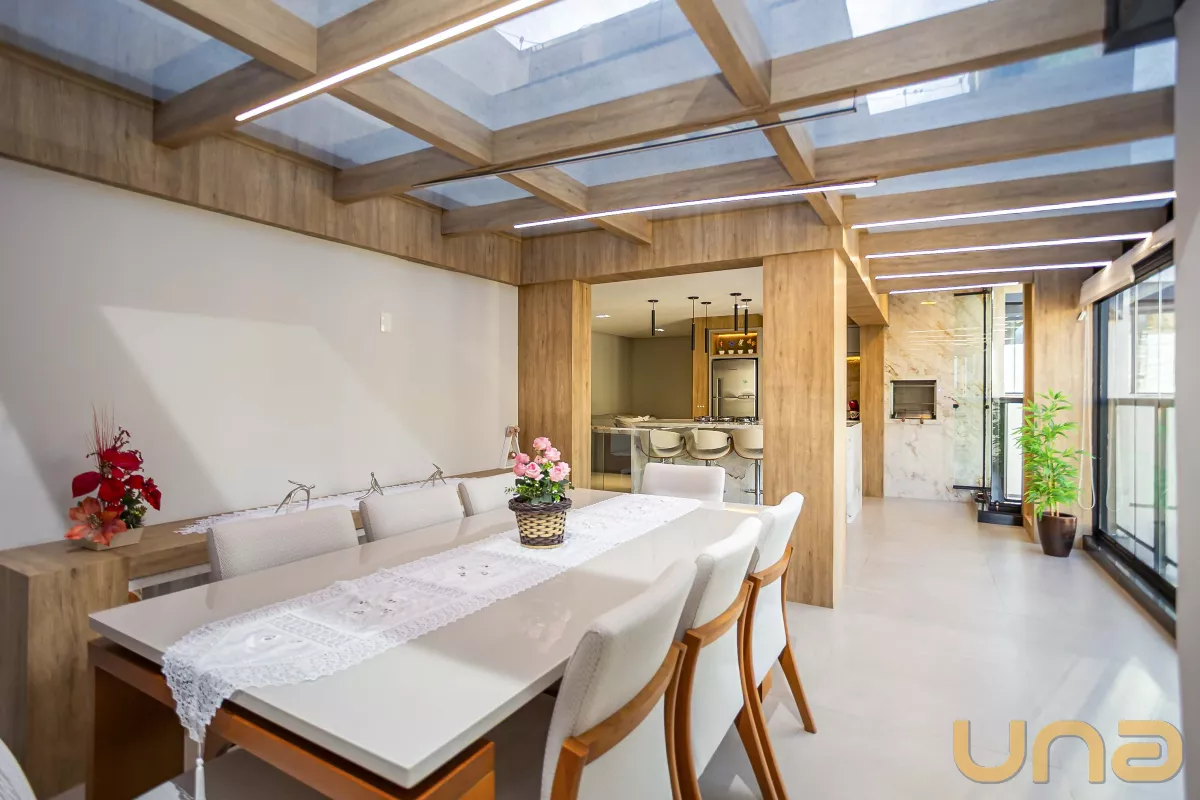 A área gourmet é um dos grandes destaques, equipada com cozinha com churrasqueira a carvão, ilha com cooktop a gás e espaço de refeição para até 4 pessoas. Conta ainda com uma sala de estar com rack e cristaleira, além de uma sala de jantar com lareira. O andar também oferece um banheiro completo, área de lavanderia separada com máquina lava e seca, armários e ótimo espaço de armazenamento. O fechamento em Reiki permite integrar os ambientes internos com a vista externa, tornando o espaço ainda mais aconchegante e versátil.