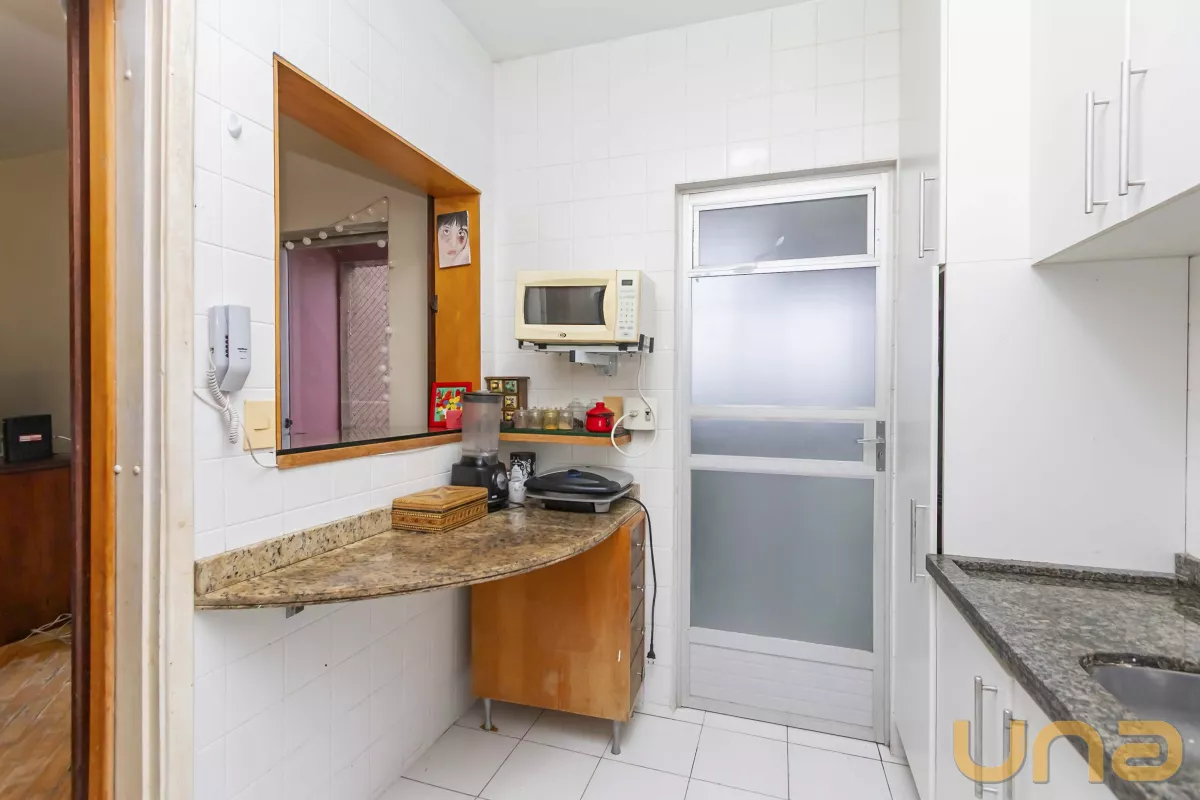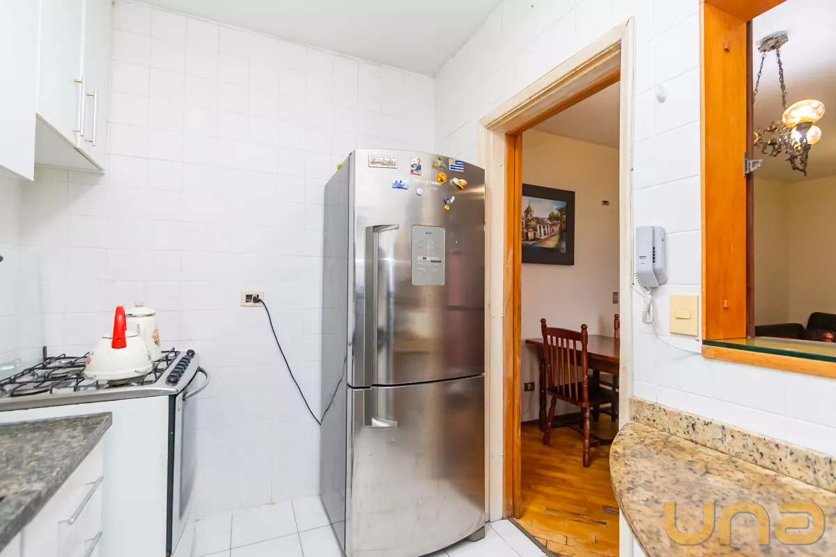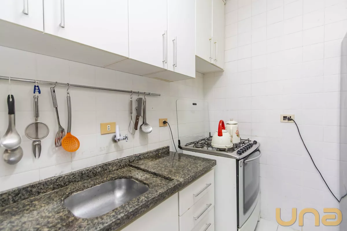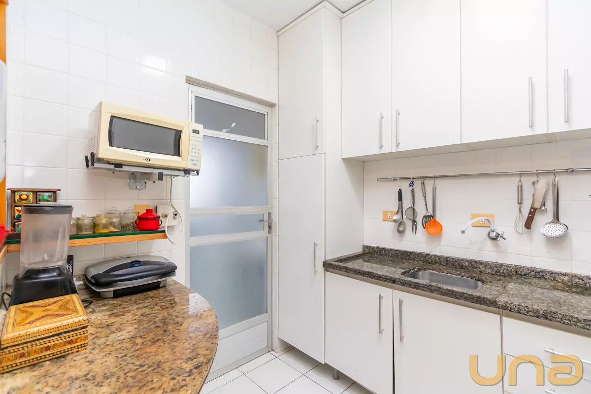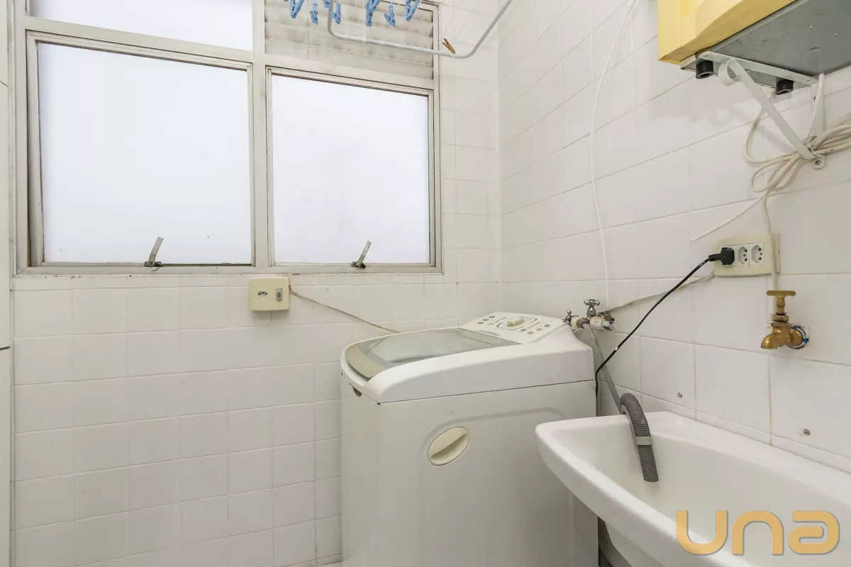 A sala é ampla e acomoda dois ambientes – estar e jantar – com ótimo aproveitamento de luz natural. A cozinha é planejada, equipada com armários sob medida, e conta com uma lavanderia de apoio.