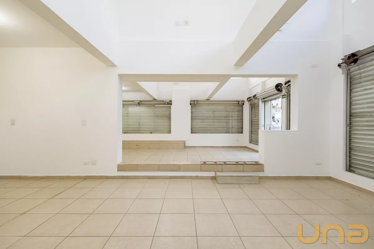 Com 160m² de área privativa, a loja é dividida em dois pavimentos. O primeiro é dividido em vão livre, copa e um banheiro. Já o segundo pavimento é distribuído em mezanino e banheiro, subsolo com garagem, escada interna em alvenaria, com ótima circulação.