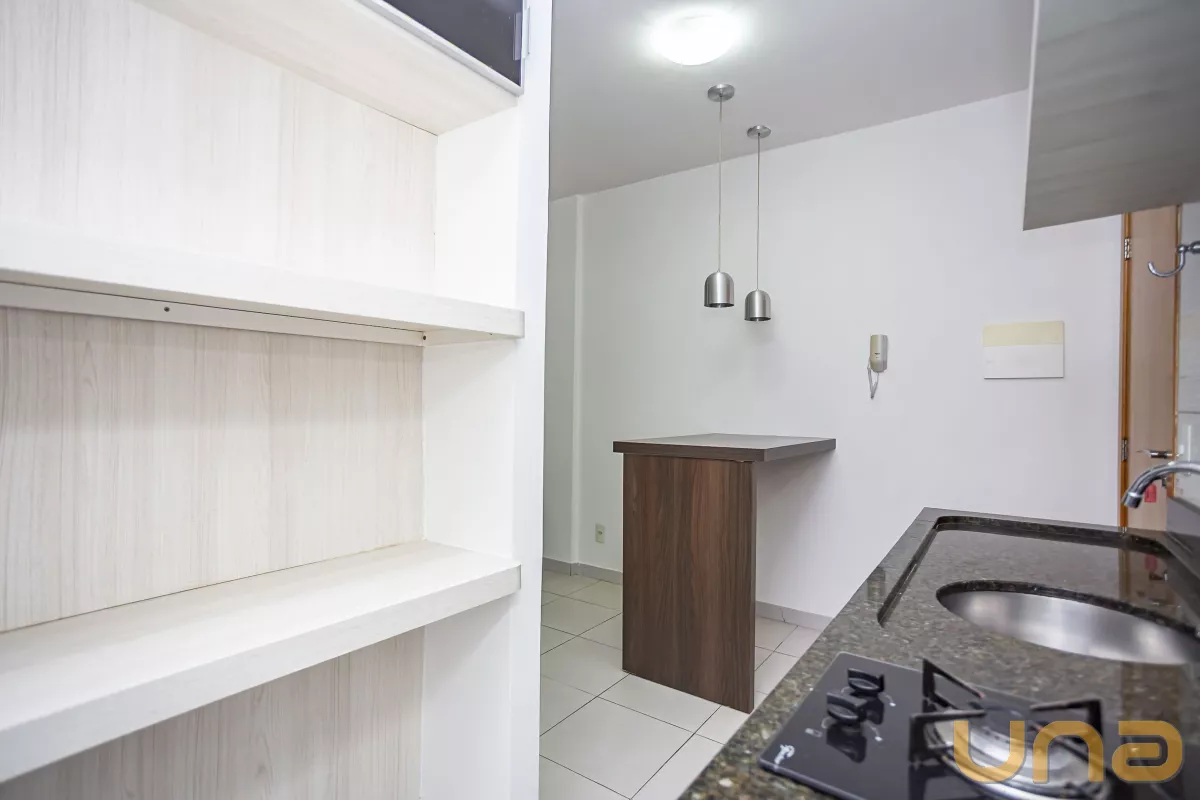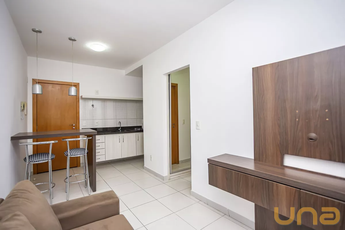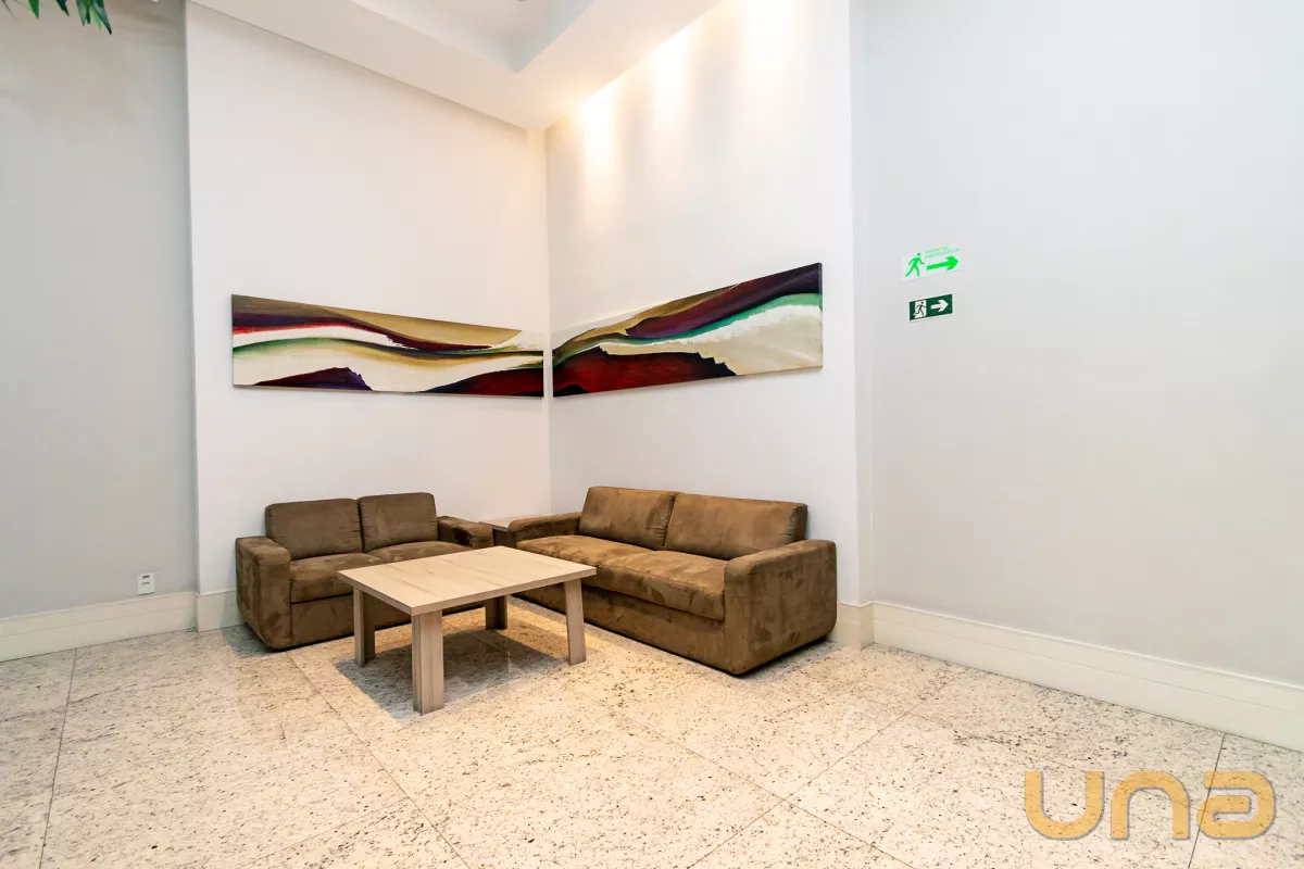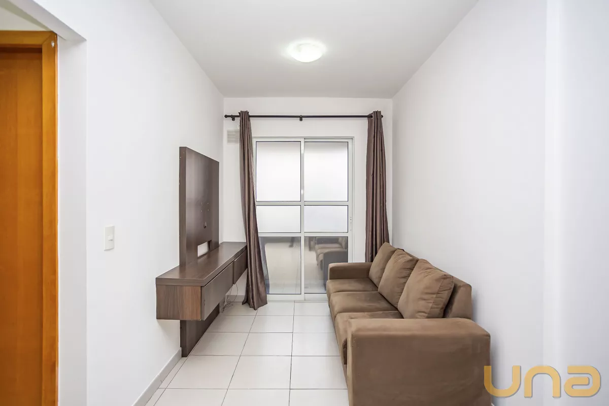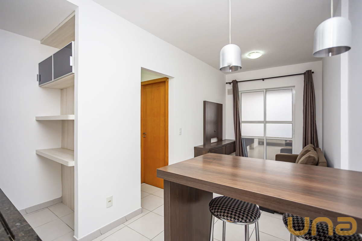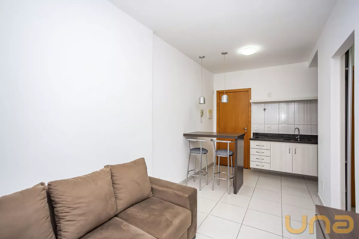 O apartamento está completamente mobiliado, com destaque para a cozinha que possui armários planejados, garantindo organização e espaço para armazenamento. A sala de estar íntima é um espaço aconchegante e agradável, perfeito para relaxar após um longo dia de trabalho.