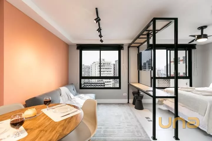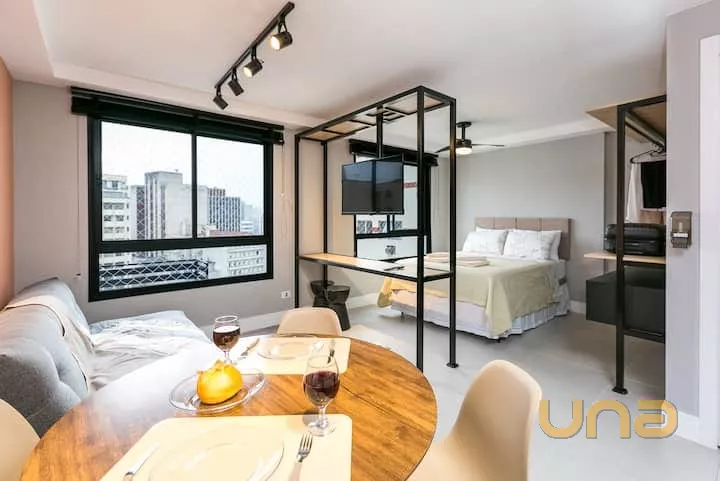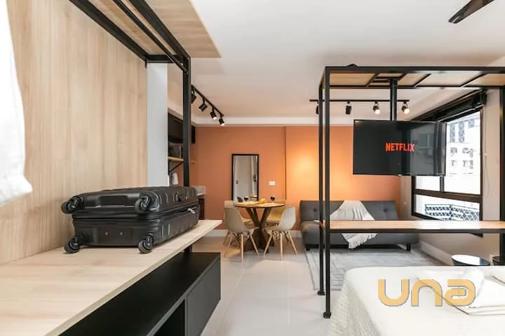 Apartamento mobiliado Apartamento mobiliado com estilo moderno e arquitetura industrial, ideal para quem busca praticidade e bom gosto no coração de Curitiba. Possui piso em porcelanato fosco e ambientes bem equipados e funcionais. O imóvel conta com ar-condicionado, armários embutidos, cama, frigobar, fogão por indução, micro-ondas, pia e bancada em pedra de granito. Além disso, dispõe de um banheiro completo com box de vidro, pia com armário, espelho e chuveiro a gás. A sala é equipada com sofá-cama, mesa com cadeiras, ventilador de teto, TV e painel. SOBRE O CONDOMÍNIO Condomínio ALL YOU NEED Comodidades oferecidas: Portaria 24hrs, Portão eletrônico, Academia equipada, lavanderia equipada, salão de festas, Espaço gourmet, coworking, Sala de TV, terraço, Espaço café, restaurante no proprio condominio. Valor do condomínio: R$ 600 SOBRE A LOCALIZAÇÃO R. Riachuelo 110, Centro- Curitiba/PR Em frente a Praça Tiradentes e ao lado das Rua xv, com toda infraestrutura comercial: Mercados, farmacias, clinicas médicas, Restaurantes, Cafés, Livrarias, lojas, Parques e shopping Italia e muito mais!!! Gostou deste imóvel? Entre em contato e agende uma visita para conhecer pessoalmente!
