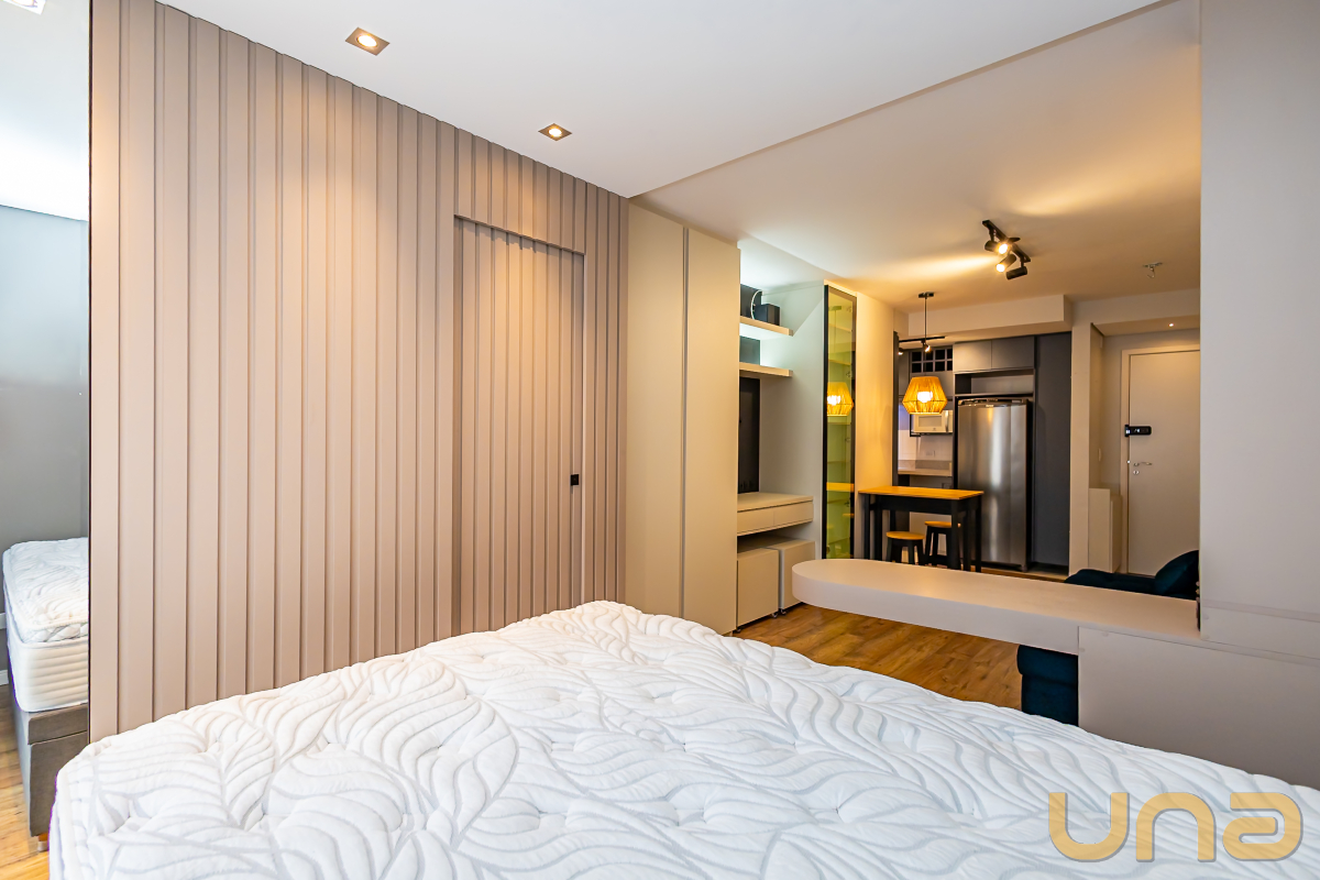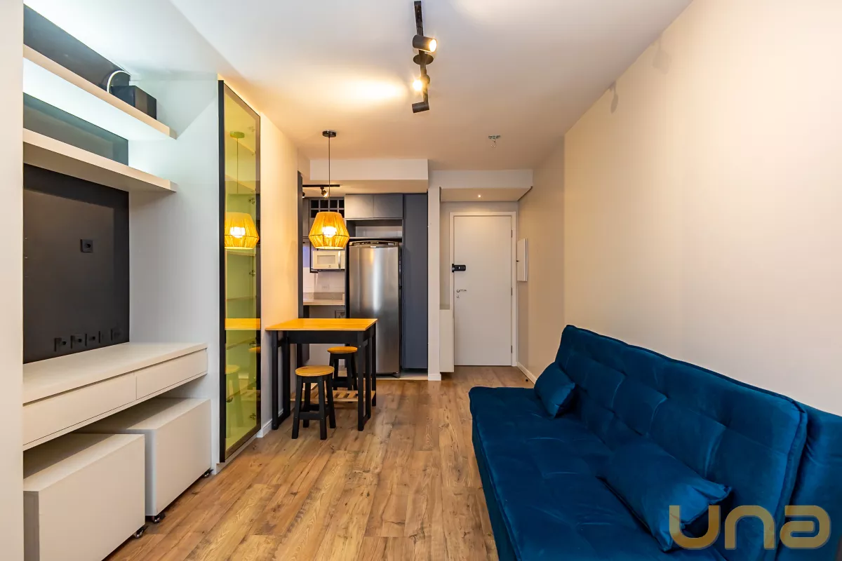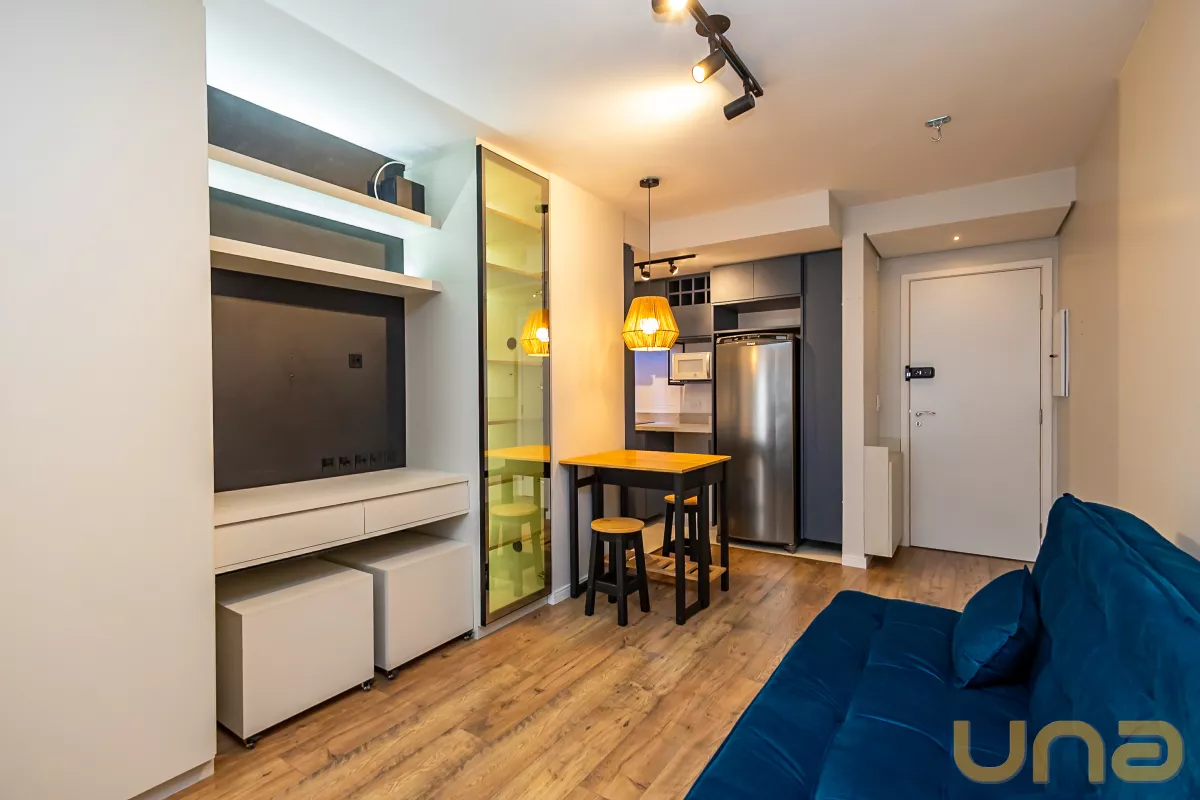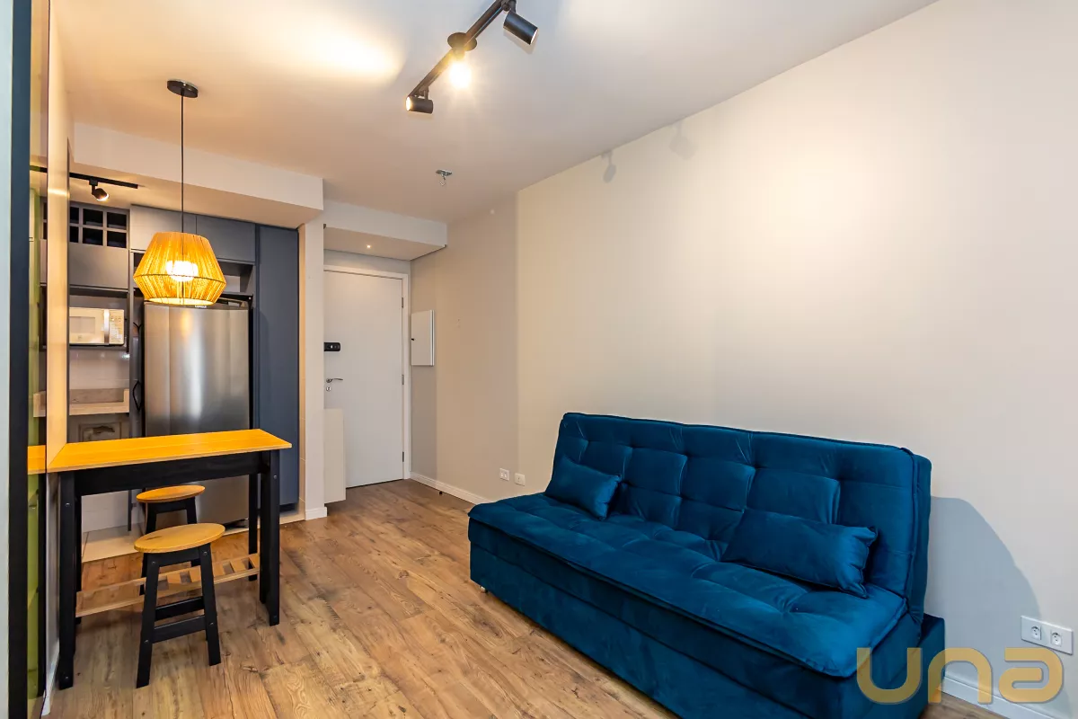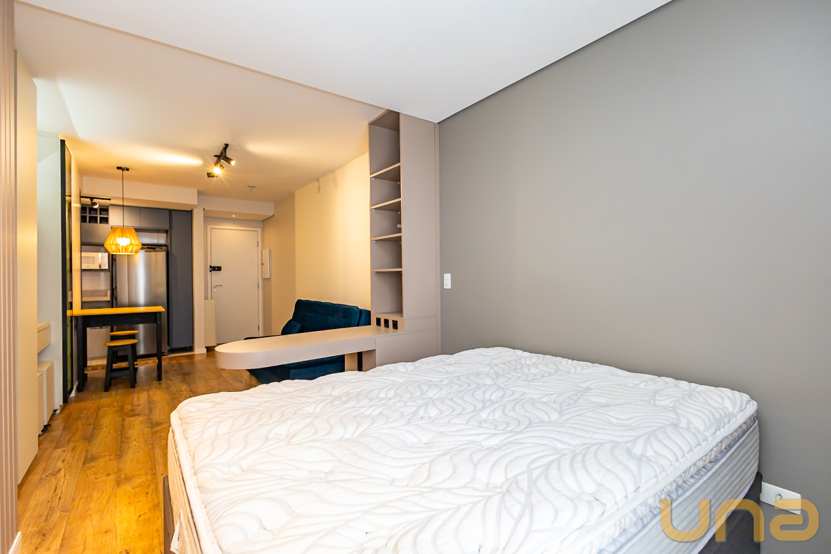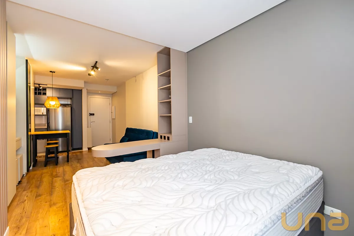 Studio mobiliado, com piso laminado e ambientes bem equipados, ideal para quem busca praticidade e conforto no centro da cidade.