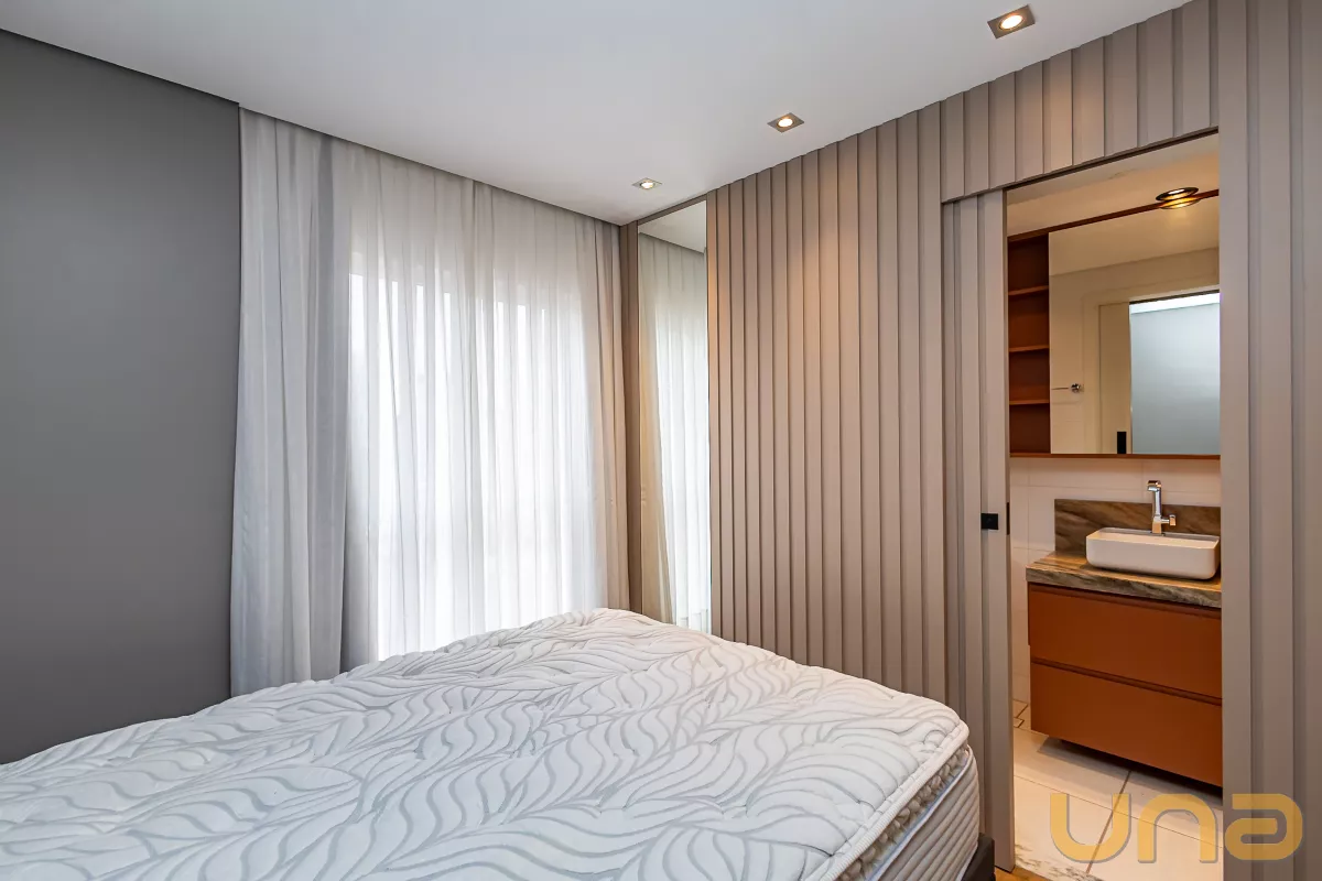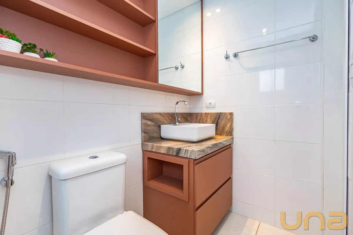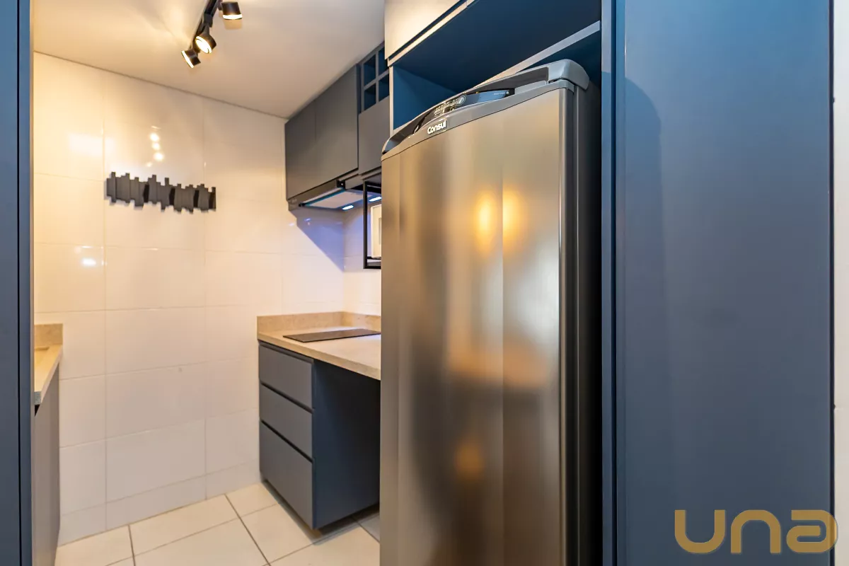 O imóvel conta com armários embutidos, cama, geladeira, fogão por indução e pia com bancada em pedra. O banheiro é completo, equipado com box de vidro, pia com armário, espelho e chuveiro a gás – pronto para morar, conta com 01 vaga de garagem livre!
