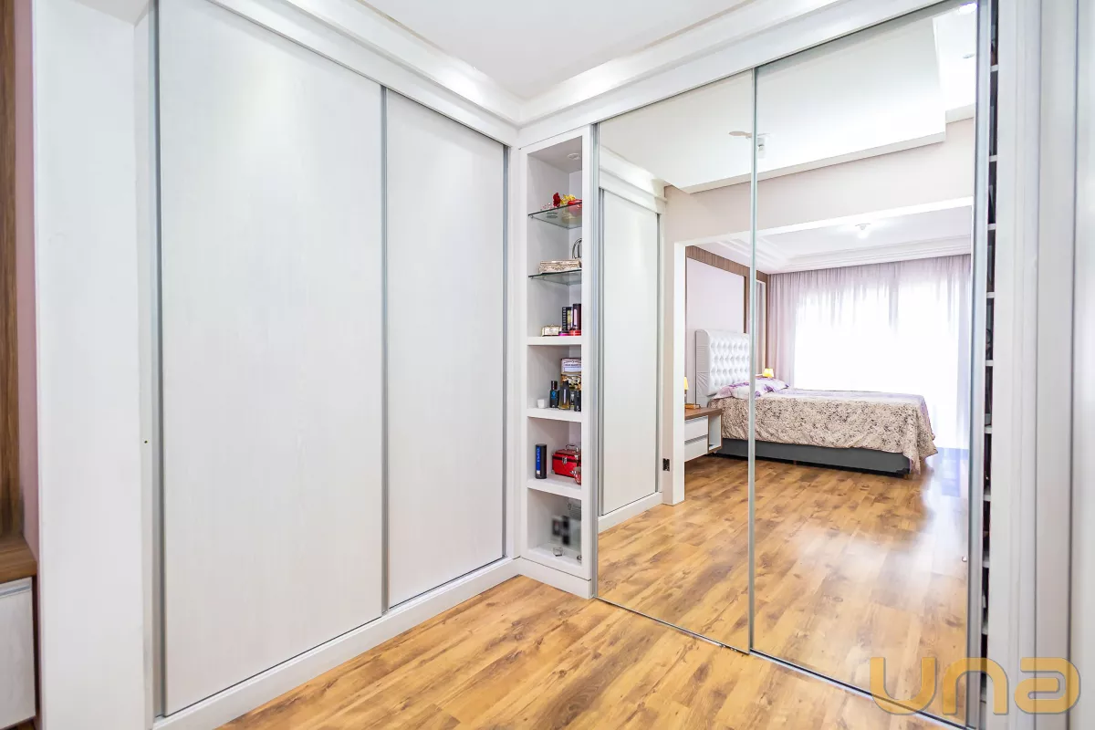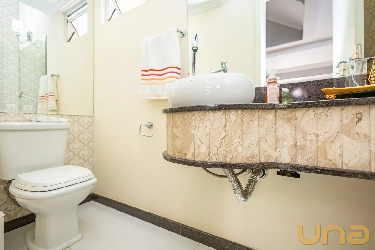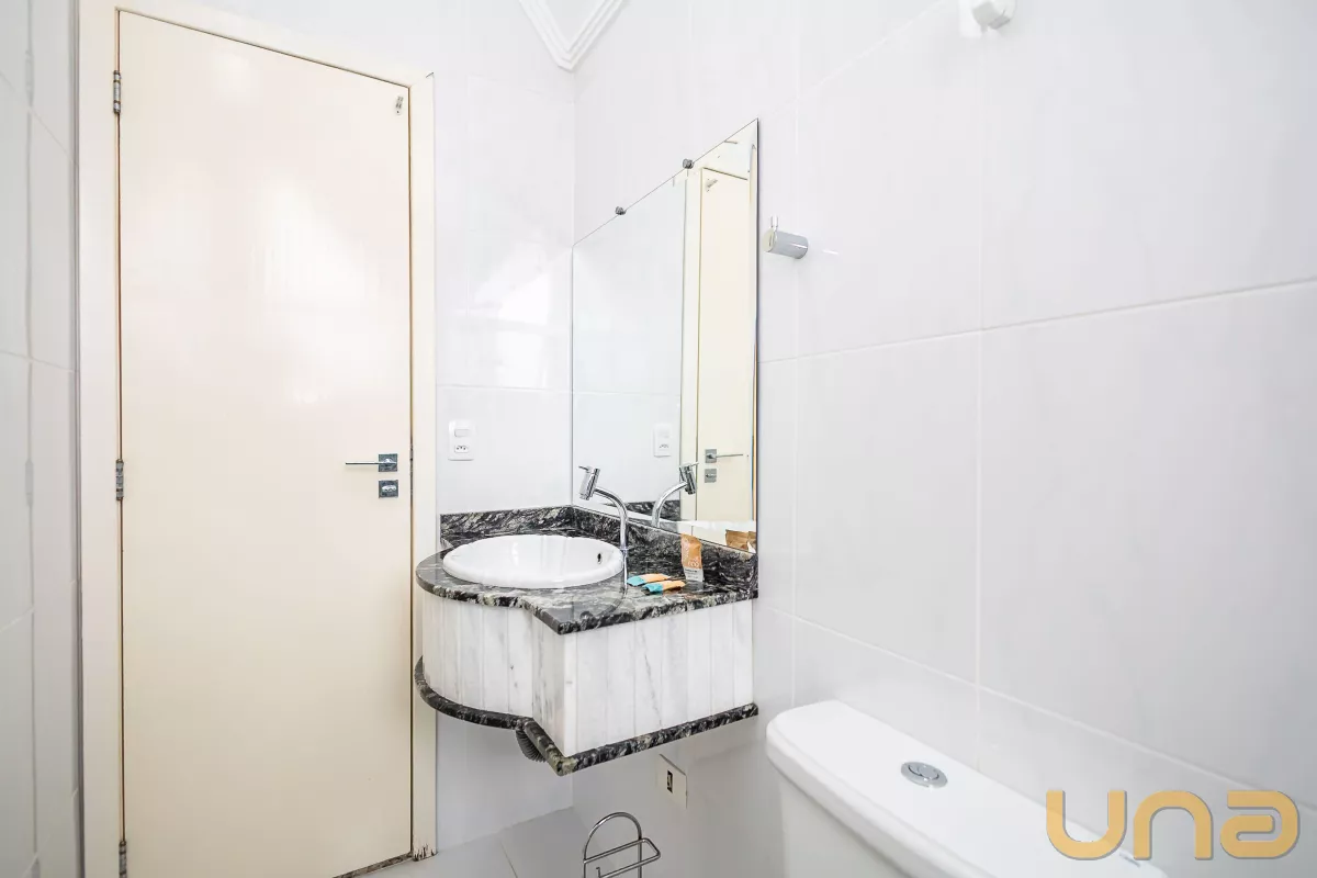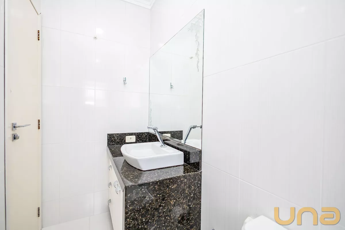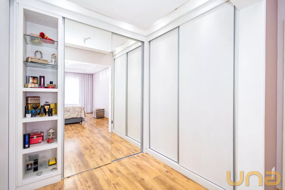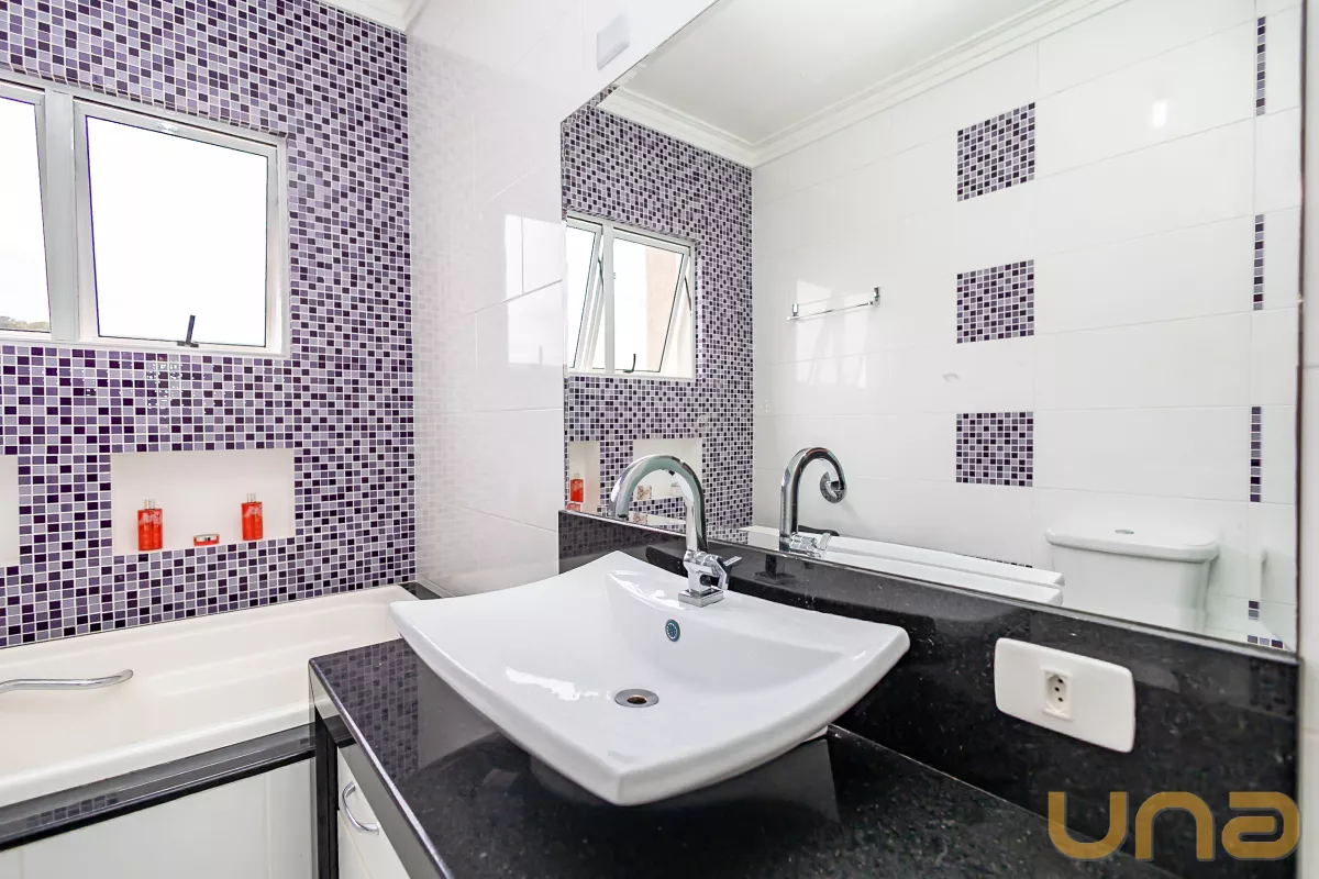 Nos fundos, há um jardim encantador com plantação de uvas, fonte decorativa, árvore e uma edícula com churrasqueira, o espaço ideal para receber amigos e família. A edícula ainda conta com lavabo e lavanderia ampla. A escada com iluminação embutida leva ao segundo andar, onde estão os dormitórios. O primeiro quarto possui sacada com vista para a rua; o segundo conta com armário planejado, cama e mesa de estudos, além da vista para o quintal. A suíte master é um destaque à parte, com sacada, closet com portas espelhadas e banheiro com banheira.