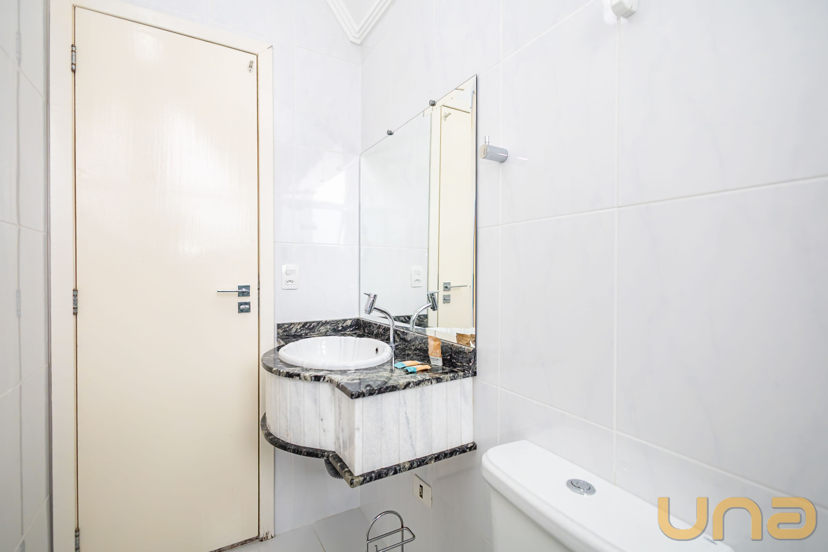 No térreo, a entrada conta com um jardim na frente e duas vagas de garagem. A sala é ampla, comportando dois ambientes e mesa de jantar. Em outro cômodo, a cozinha espaçosa é perfeita para quem gosta de cozinhar, com vista para o quintal e para a edícula.
