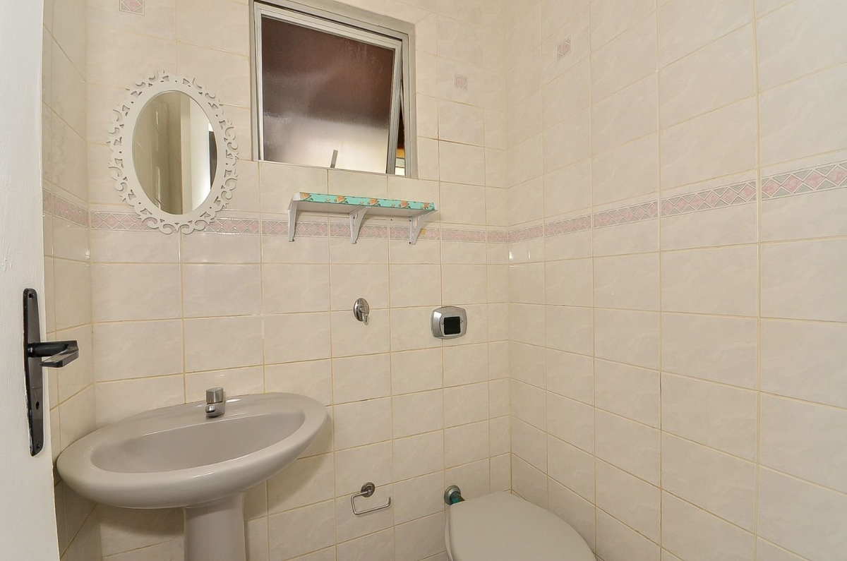Sala para dois ambientes (estar e jantar), cozinha, lavanderia na área externa, lavabo, e banheiro social.
