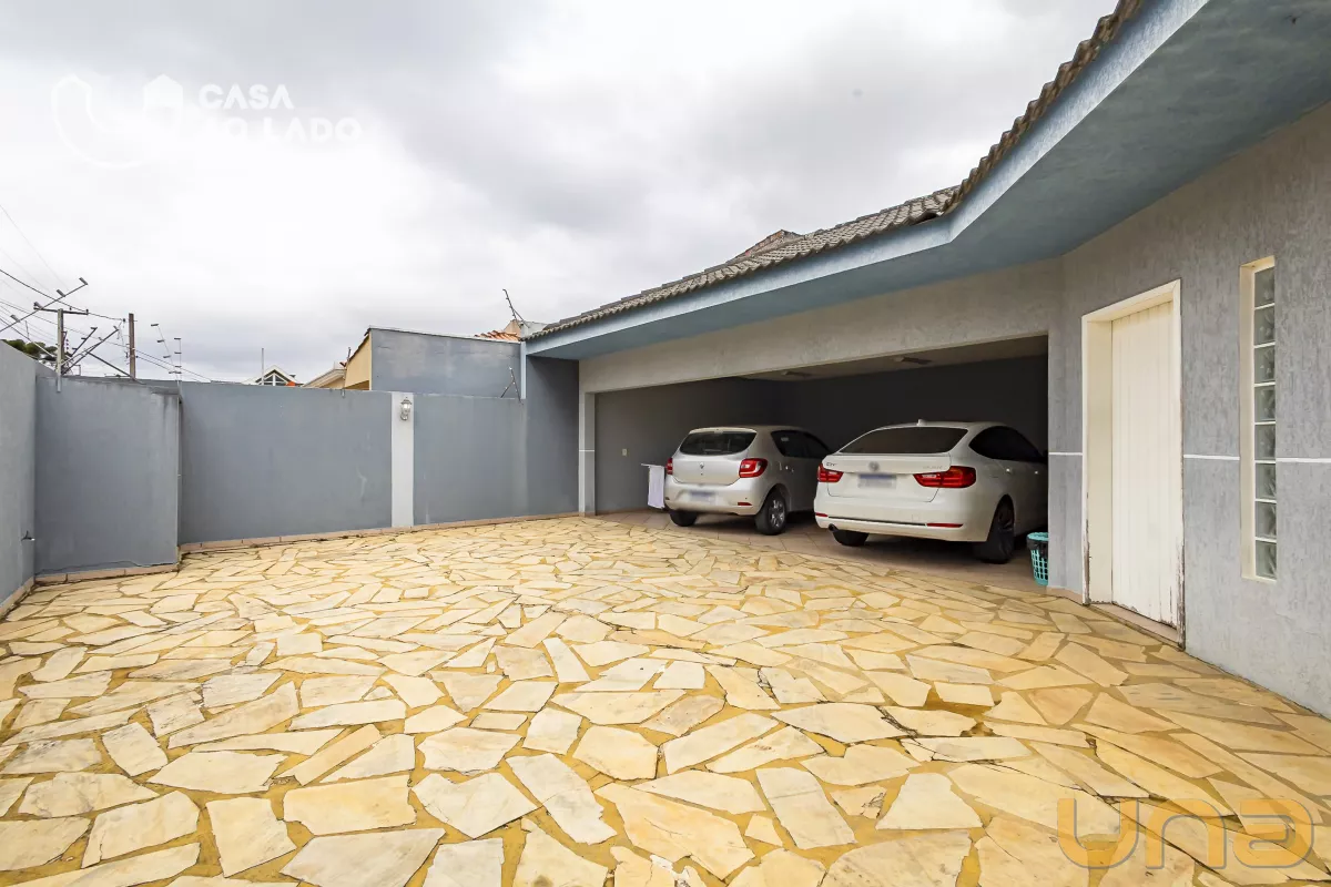 O quintal é amplo e possui um belo jardim, perfeito para quem busca contato com a natureza e um espaço para relaxar. E para a comodidade dos moradores, a casa conta com 1 vaga de garagem.
