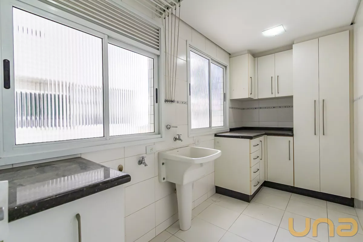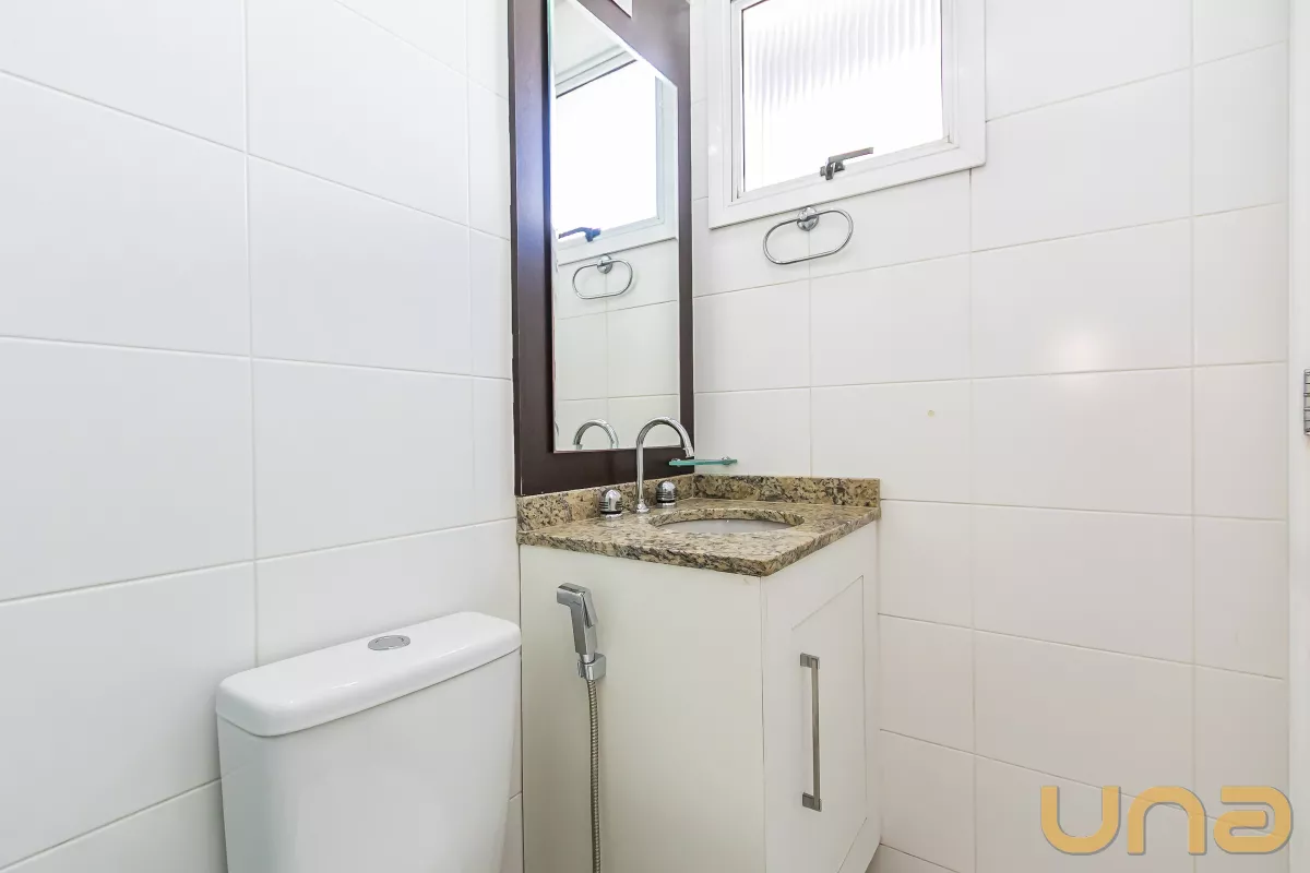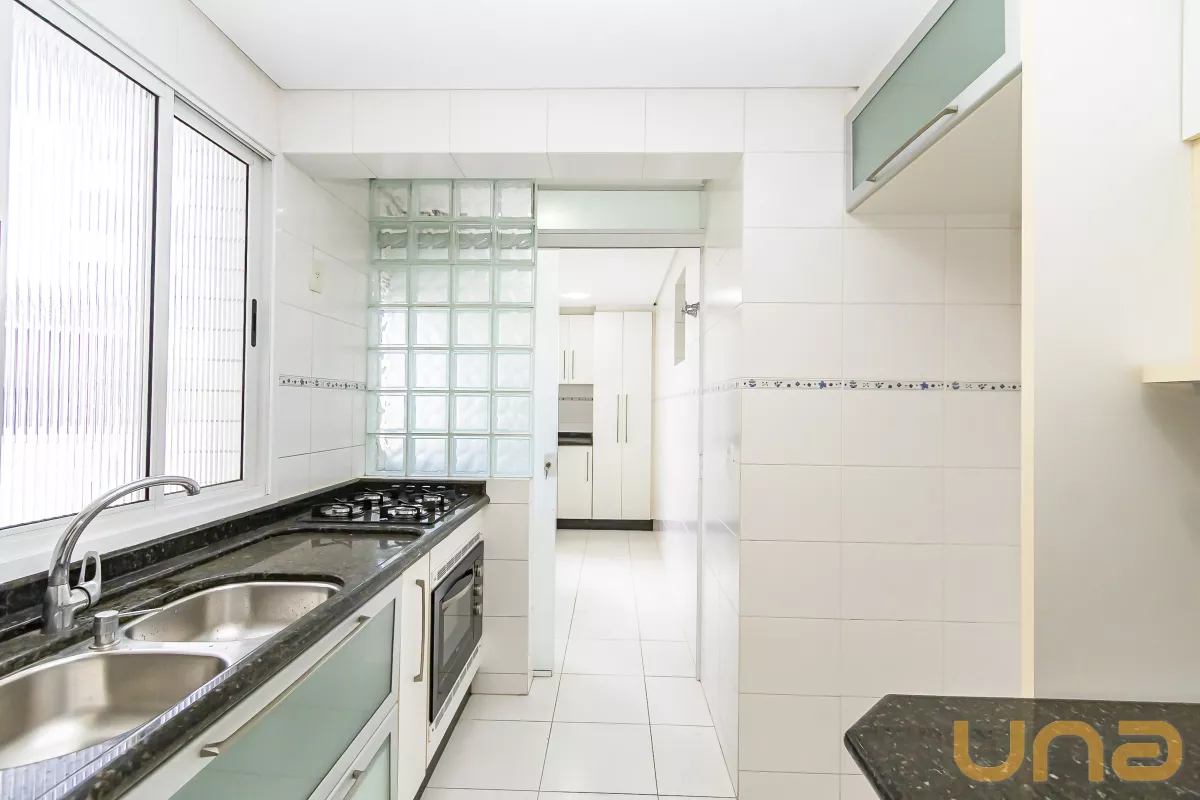 Apartamento recém pintado, com luminárias instaladas. A cozinha é mobiliada, conta com bancadas em pedra, forno e fogão, além de uma área de serviço separada, equipada com armários e bancada em pedra. Piso em cerâmica nessa área.A sala para dois ambientes — estar e jantar — é ampla e possui sacada.