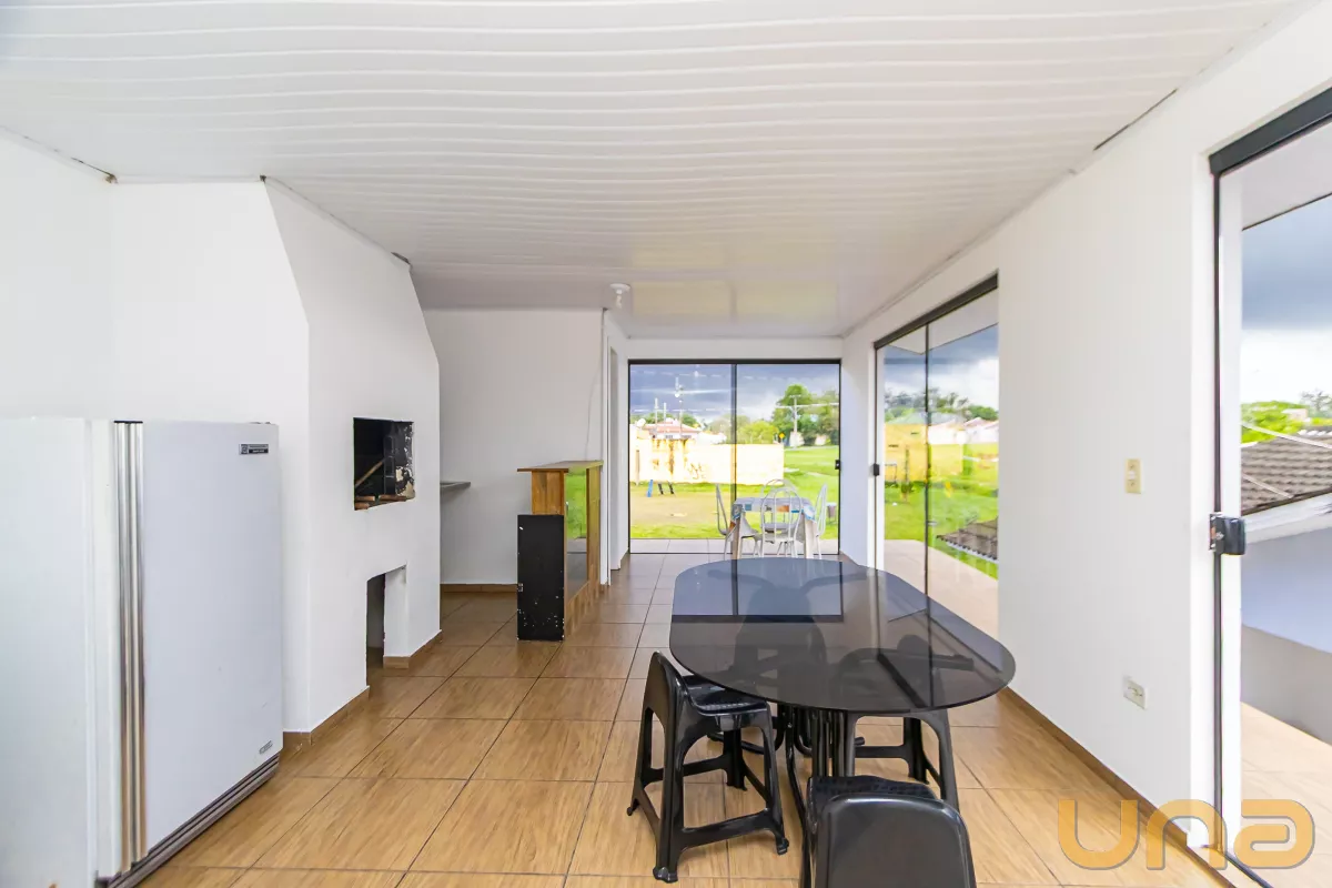 A garagem comporta até 4 carros, sendo 2 vagas cobertas. Acima da garagem, encontra-se uma charmosa e funcional área gourmet/churrasqueira com cerca de 50 m², totalmente fechada em vidro e elevada, oferecendo uma vista agradável para o parquinho. O imóvel possui ainda portão eletrônico, lavanderia, canil e um quintal gramado, com espaço verde e plantas.
