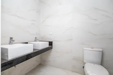 Lindo sobrado pronto para morar, que une conforto, elegância e funcionalidade em cada detalhe. A área social conta com uma sala ampla e bem iluminada, integrada à sala de jantar, criando um ambiente acolhedor e perfeito para receber amigos e familiares. No piso inferior, o imóvel dispõe ainda de uma cozinha prática e um lavabo com acabamento em pia de mármore.