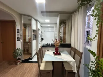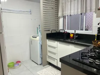 Apartamento à venda com sala ampla para dois ambientes, cozinha com armários, cooktop e forno a gás, integrada à área de serviço. A área íntima é bem distribuída, composta por dois quartos e um banheiro social com armário planejado. O apartamento recebe sol pela manhã e a tarde, sendo bem arejado e iluminado. Conta com uma vaga de garagem coberta e livre.