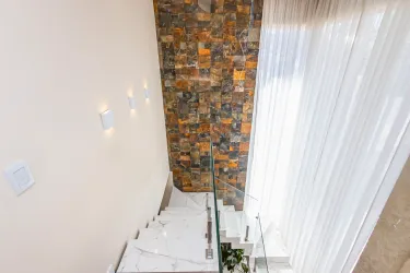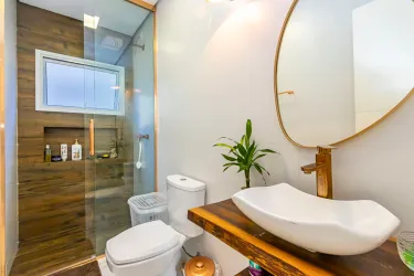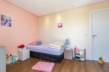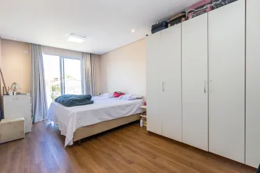 Casa triplex com excelente distribuição dos ambientes, composta por cinco quartos, sendo uma suíte espaçosa e um escritório que pode ser facilmente adaptado para dormitório. A suíte possui aproximadamente 18m² e conta com banheiro equipado com hidromassagem vertical. Há também uma sacada que interliga dois dos quartos. São 2 banheiros, ambos com hidromassagem vertical.