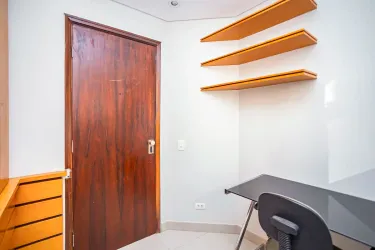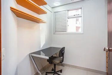 Na área íntima, o imóvel dispõe de 3 quartos, sendo um com armário, um segundo ambiente versátil que pode ser utilizado como escritório ou dormitório, além de uma suíte espaçosa que garante mais privacidade. Completa o espaço um banheiro social.
