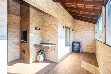 O piso superior é dedicado ao lazer, sendo um verdadeiro convite para momentos especiais: com uma ampla varanda com churrasqueira, sala de estar e jantar integradas.