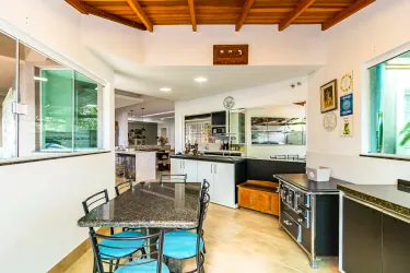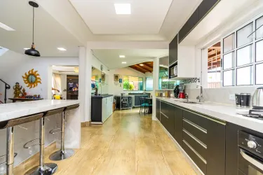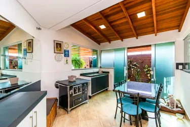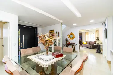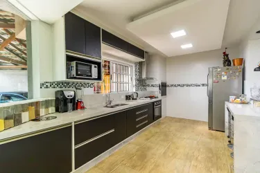 Sobrado amplo, moderno e muito bem localizado, ideal para quem valoriza conforto, praticidade e qualidade de vida no dia a dia, podendo ser também um ponto comercial. Os ambientes sociais são integrados, com sala de estar e jantar conectadas à cozinha, que conta com churrasqueira e armários planejados, criando um espaço funcional e perfeito para receber. A lavanderia é independente e o imóvel ainda se destaca pelo excelente aproveitamento do ático, ampliando as possibilidades de uso e adaptação dos ambientes.
