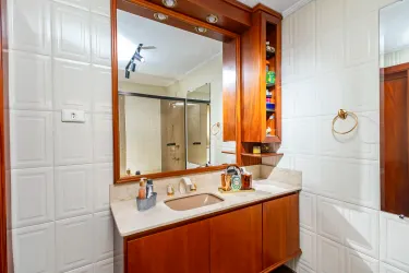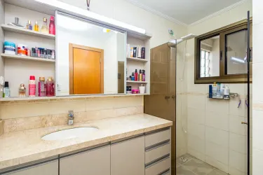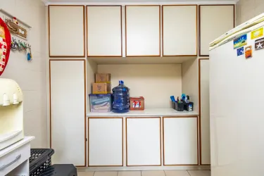Cozinha totalmente equipada com armários planejados, ideal para apoio operacional (copa ou refeitório). Área de serviço completa, com armários e espaço funcional para suporte às atividades do dia a dia. O imóvel dispõe ainda de lavabo e banheiro social, atendendo com praticidade colaboradores e clientes.