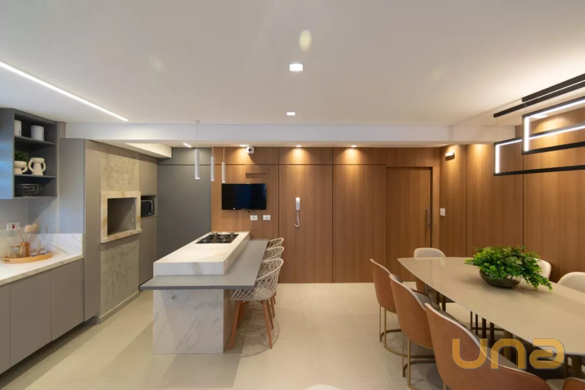 O imóvel está localizado no quarto andar e possui dois dormitórios, um amplo espaço de sala de estar e jantar integrados, cozinha com acesso à área de serviço e sacada com churrasqueira.