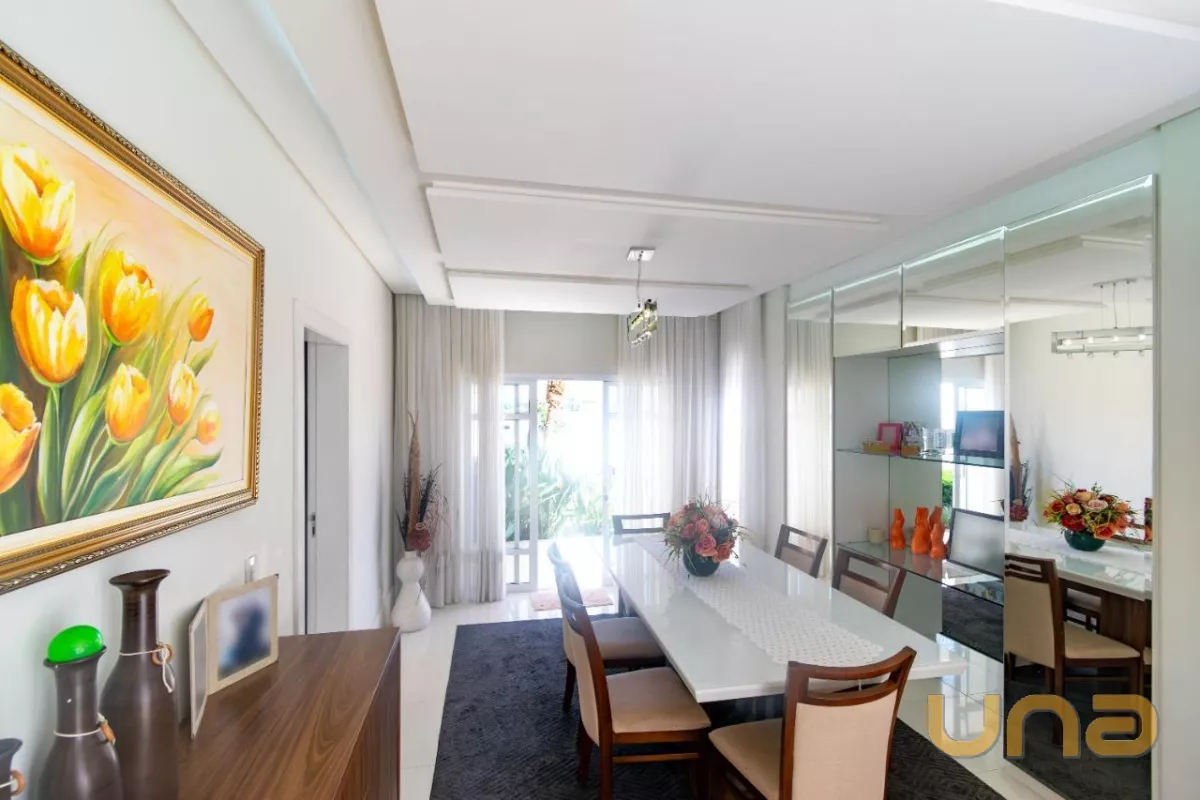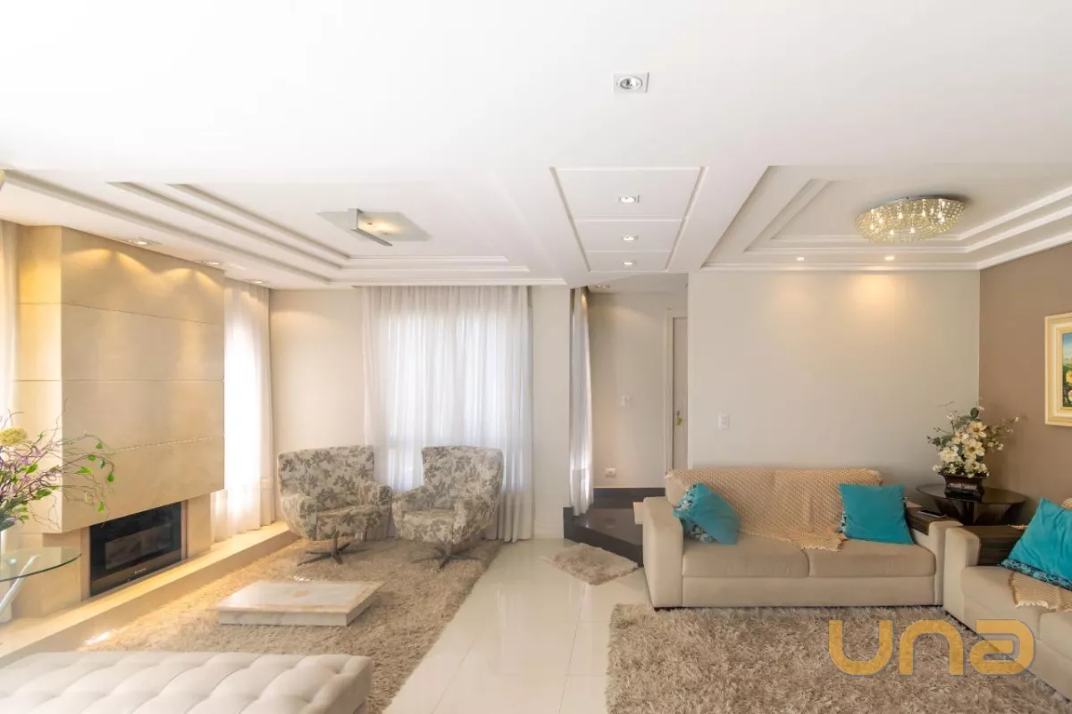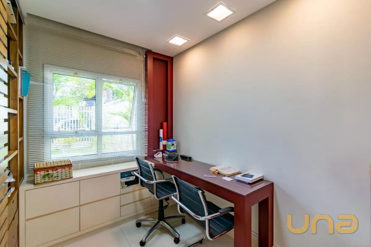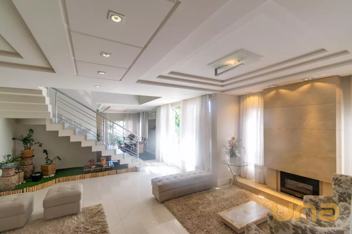 Este belíssimo imóvel, construído em um amplo terreno de 533m², oferece uma grande e aconchegante sala de estar com lareira, sala de jantar, cozinha planejada com acesso à área de serviço, escritório e um lavabo.