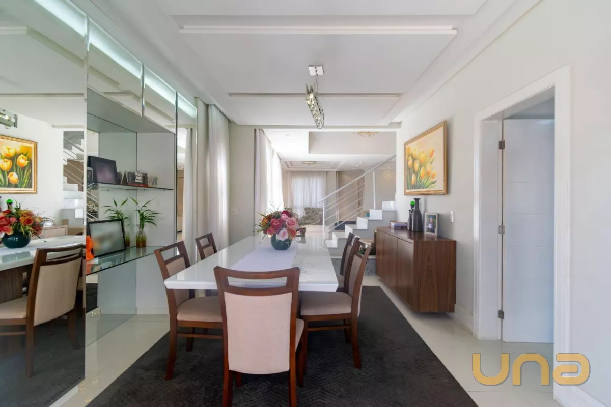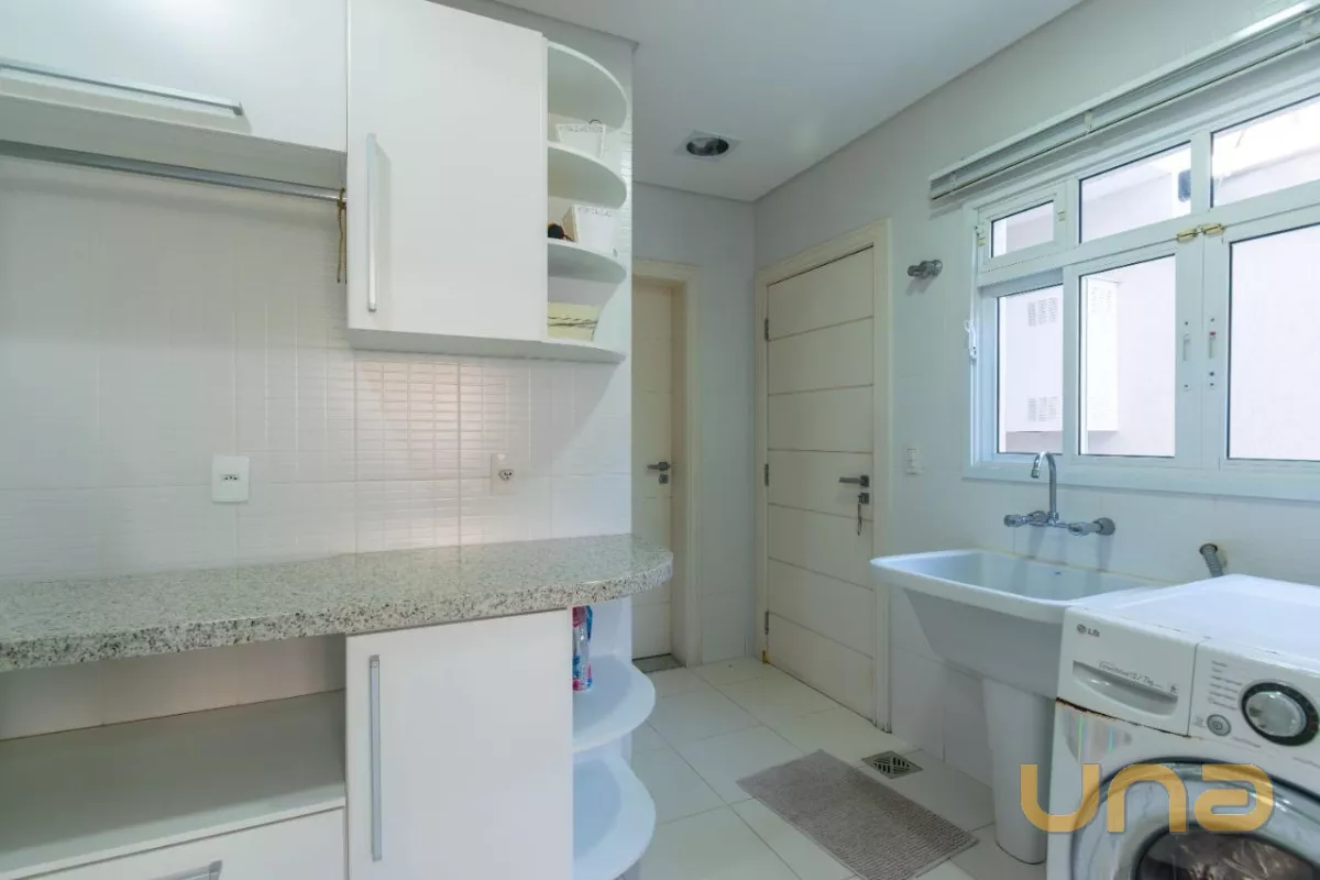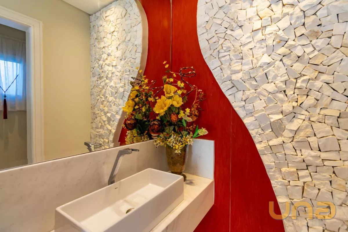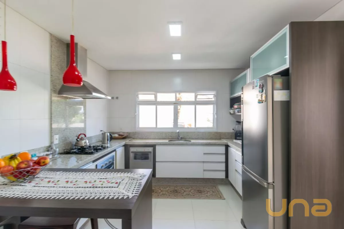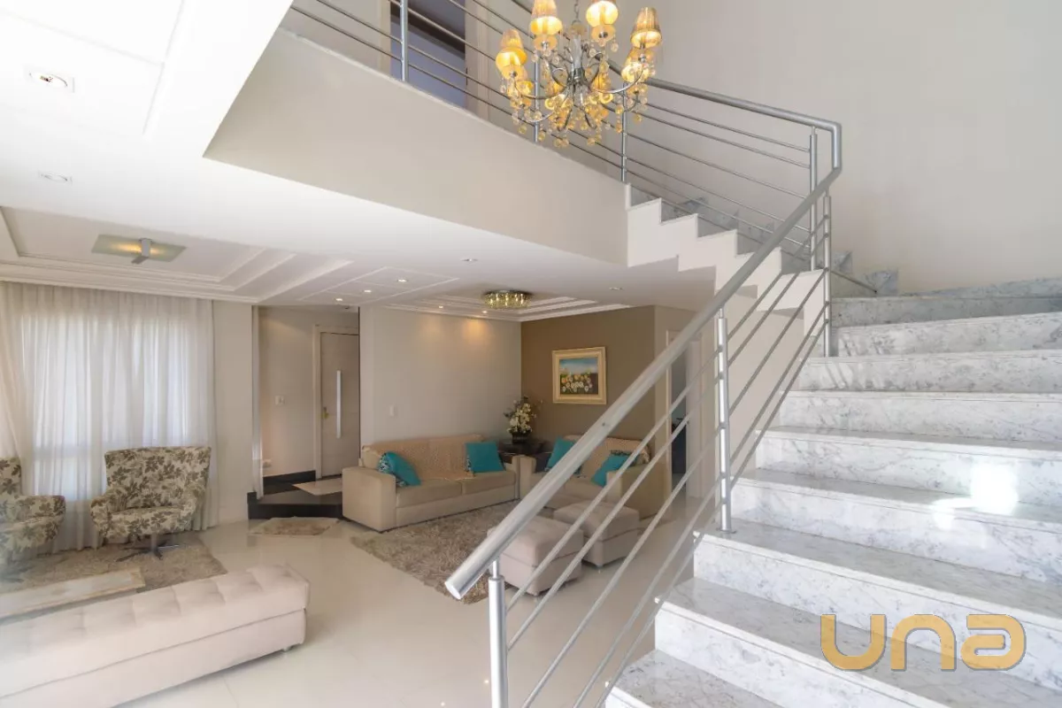 Este belíssimo imóvel, construído em um amplo terreno de 533m², oferece uma grande e aconchegante sala de estar com lareira, sala de jantar, cozinha planejada com acesso à área de serviço, escritório e um lavabo.