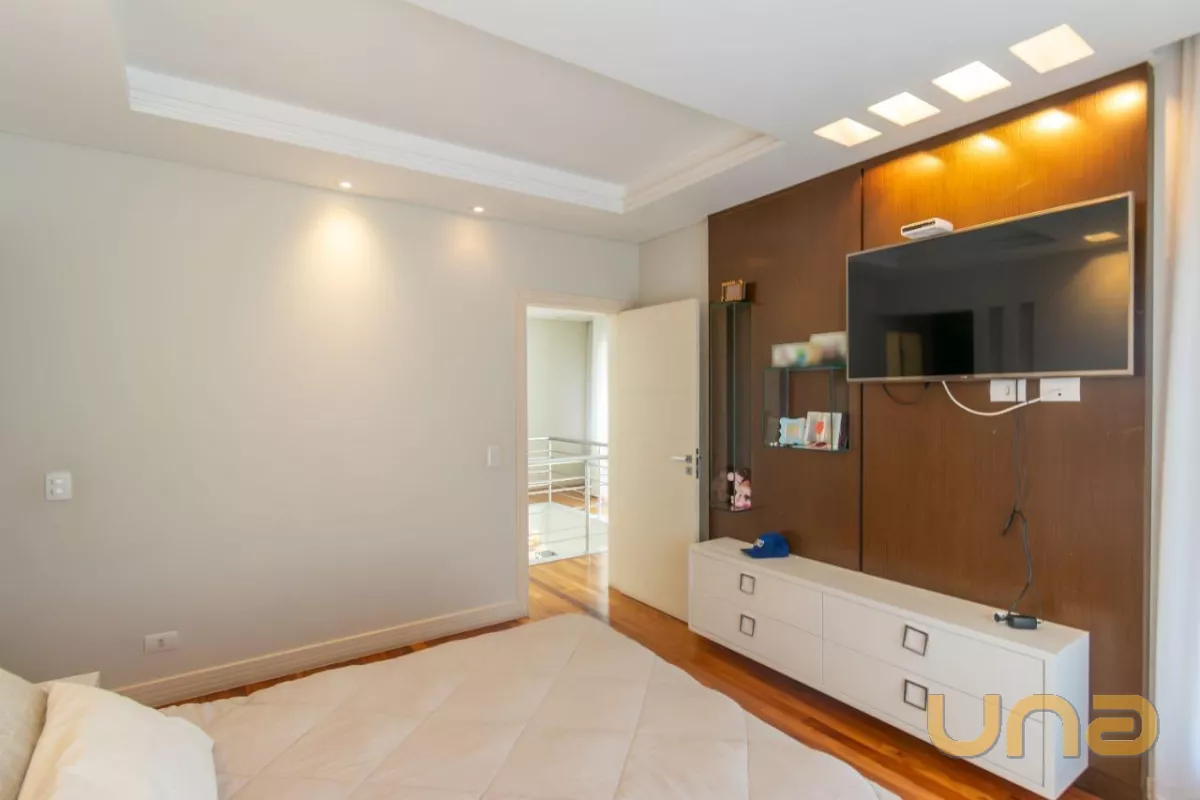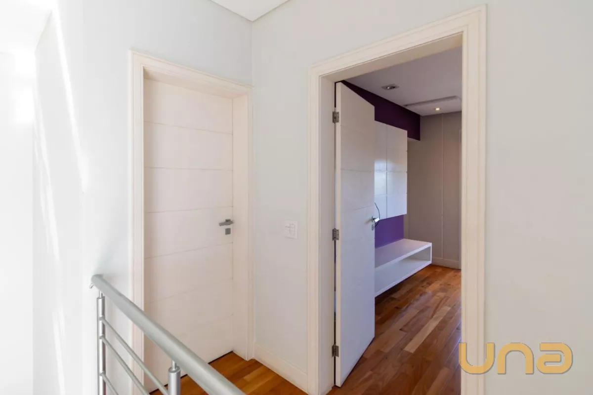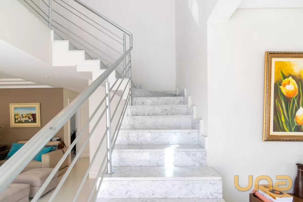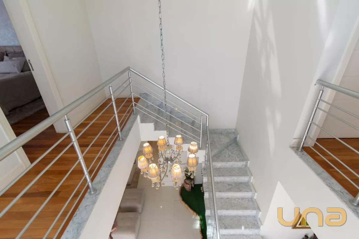 Já no piso superior, encontramos 4 quartos, sendo uma suíte master com sacada e closet e duas demi-suítes, sendo uma delas com sacada.