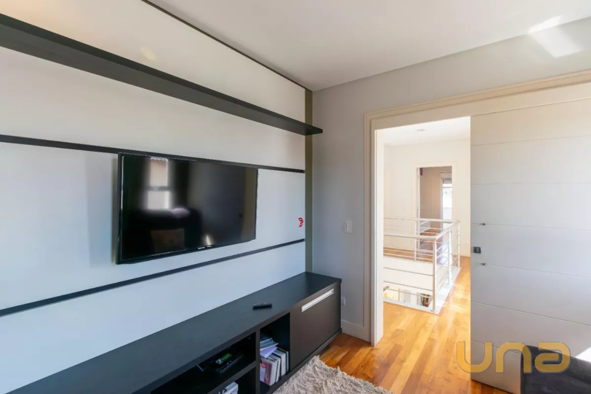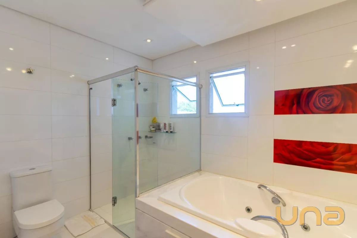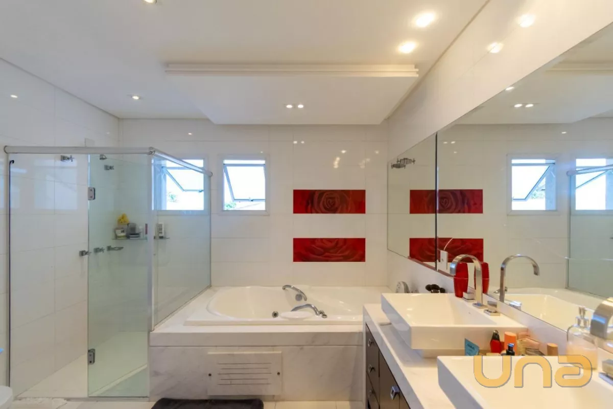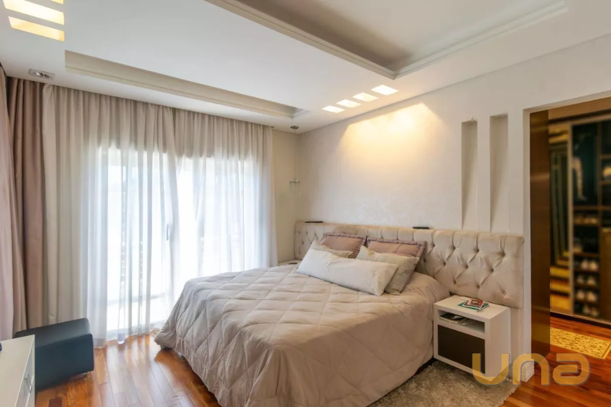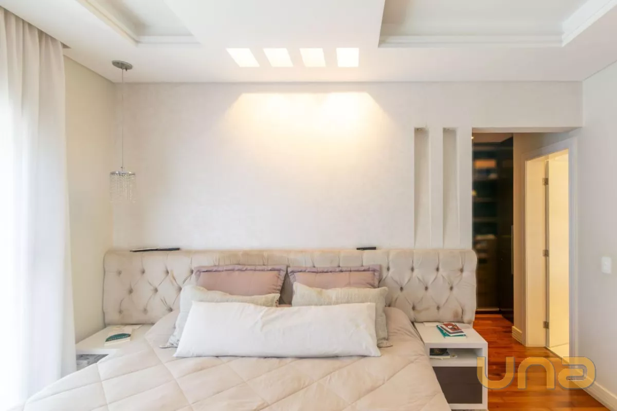 Já no piso superior, encontramos 4 quartos, sendo uma suíte master com sacada e closet e duas demi-suítes, sendo uma delas com sacada.