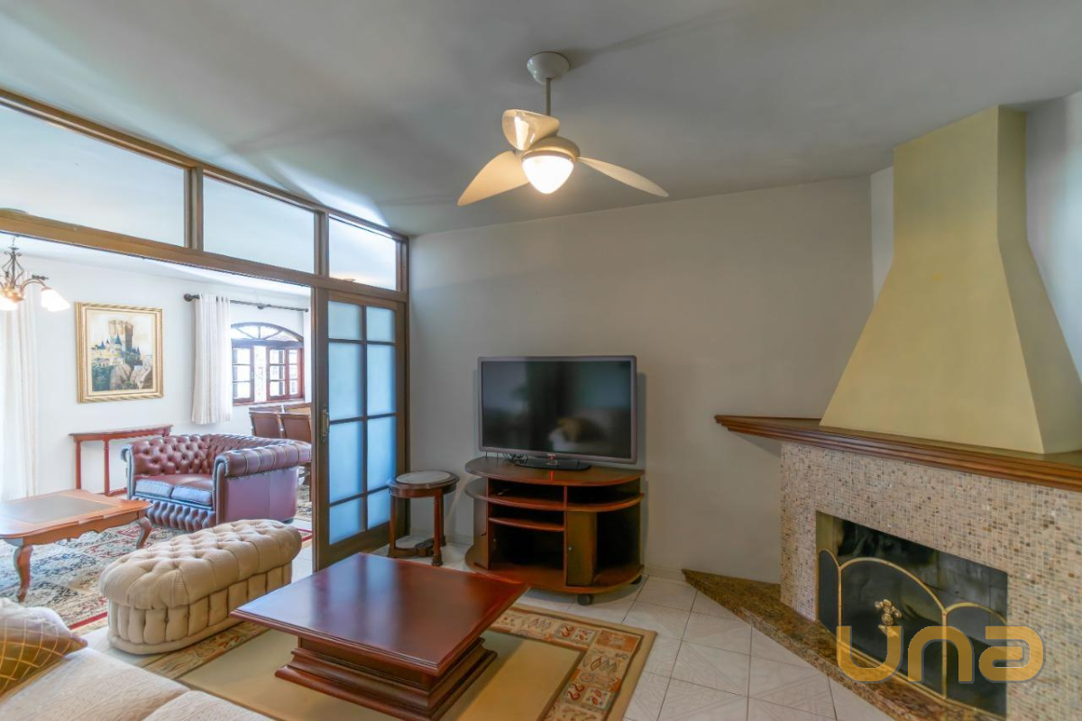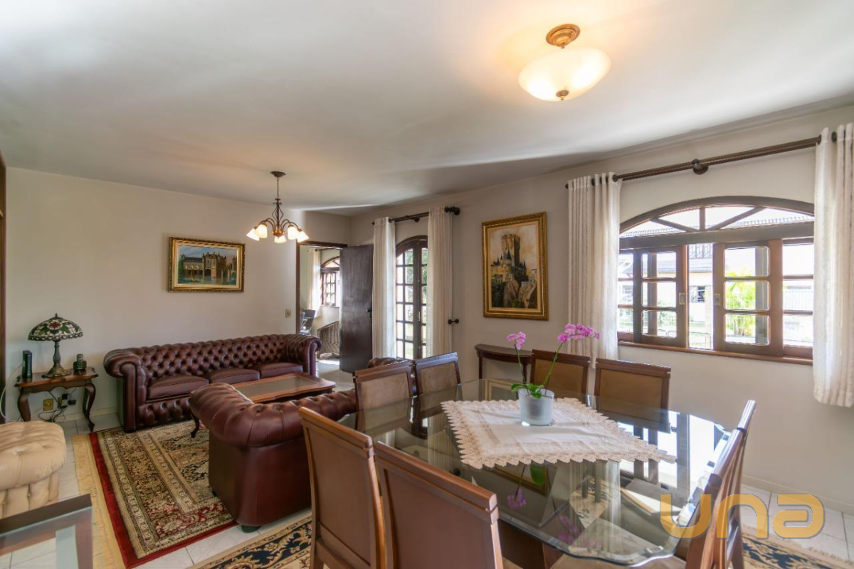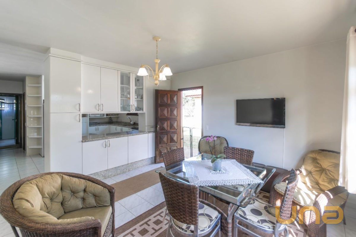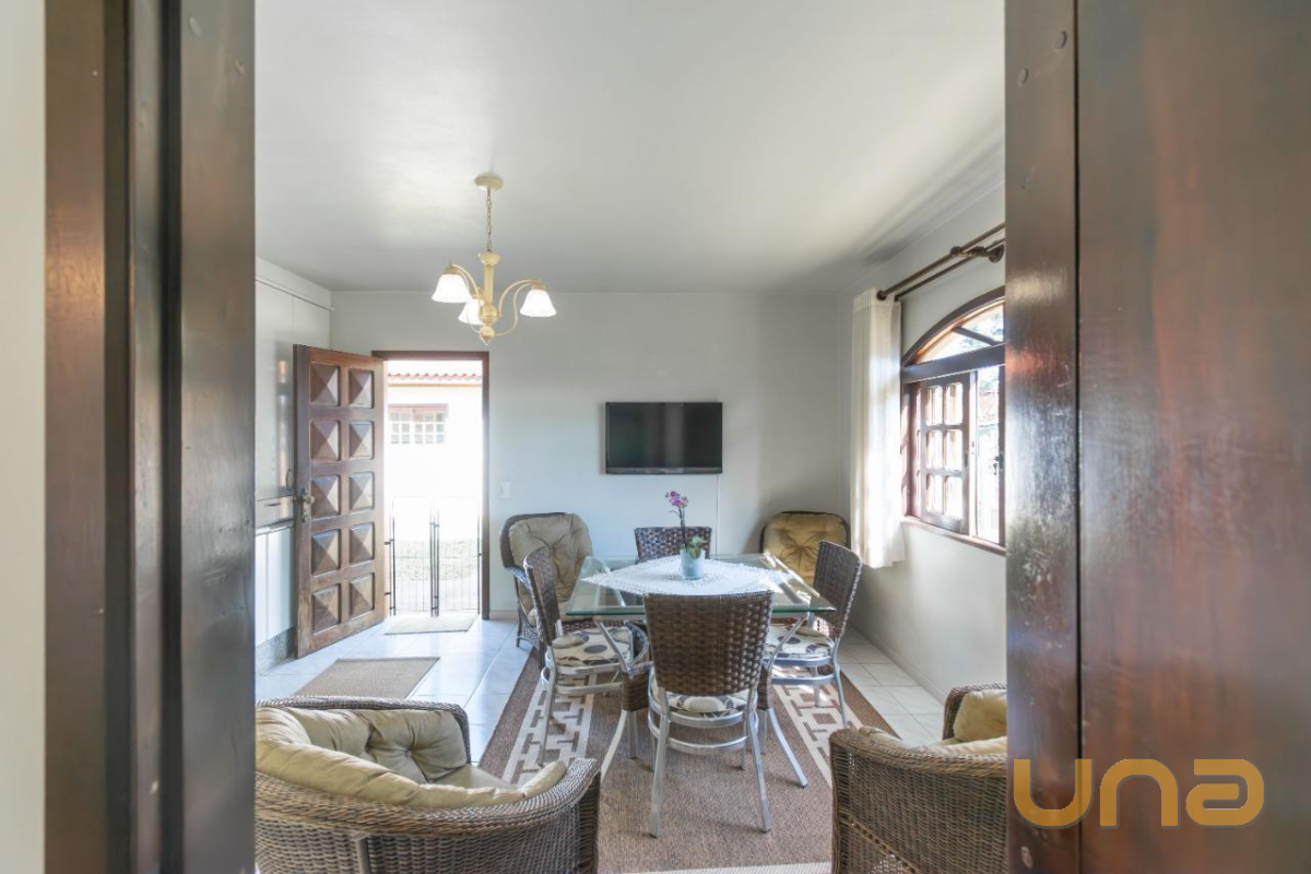 A casa conta com 172m² e possui 2 espaços de sala, sendo um deles com lareira, sala de jantar integrada à cozinha com armários, 2 banheiros e churrasqueira. O imóvel também oferece 3 quartos e 1 escritório, que pode ser utilizado como uma quarta opção de dormitório.