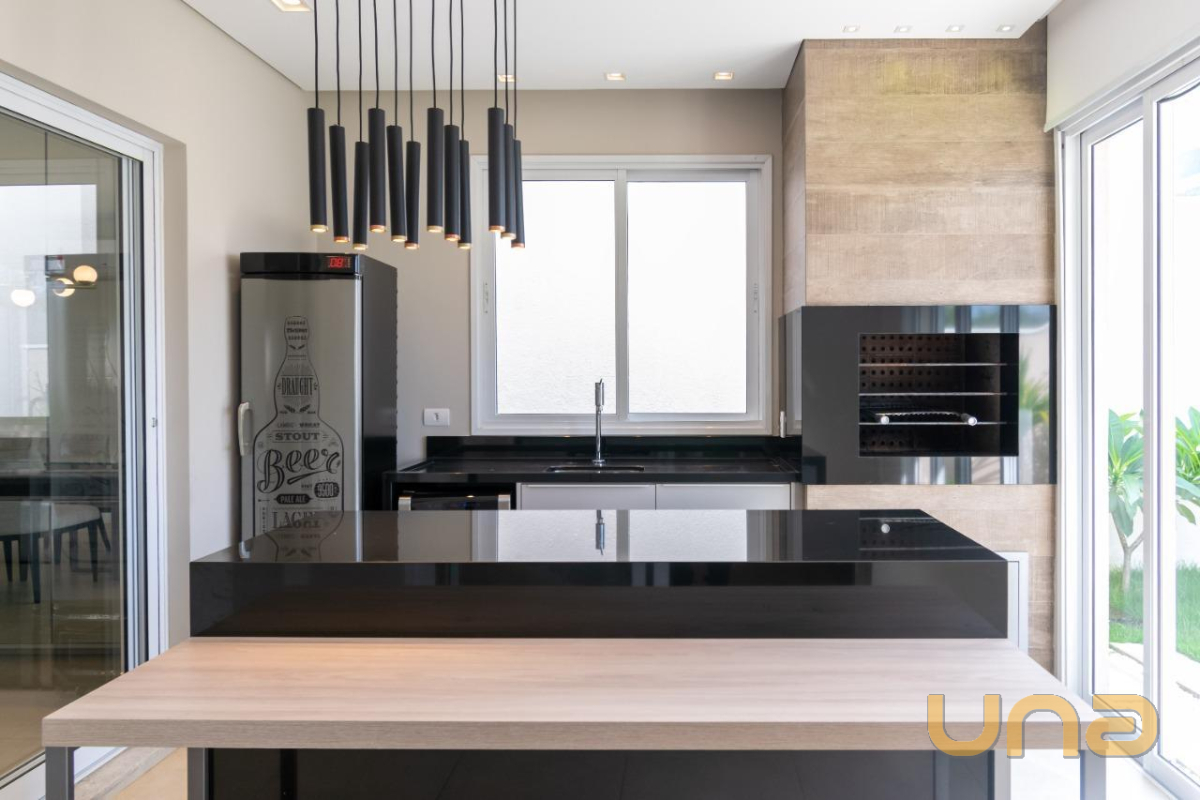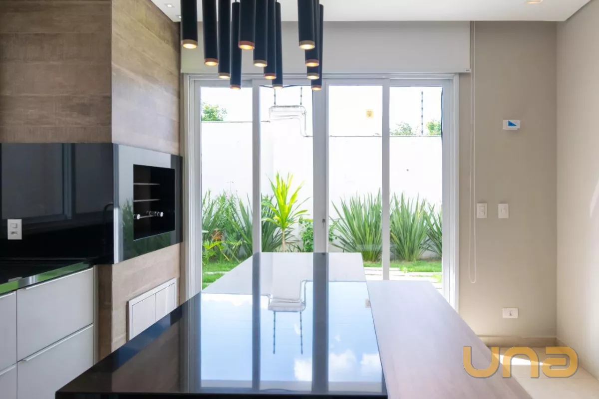 Além disso, a casa conta com cozinha planejada com churrasqueira, área de serviço, 1 lavabo, ar condicionado nos ambientes e 2 vagas de garagem coberta.