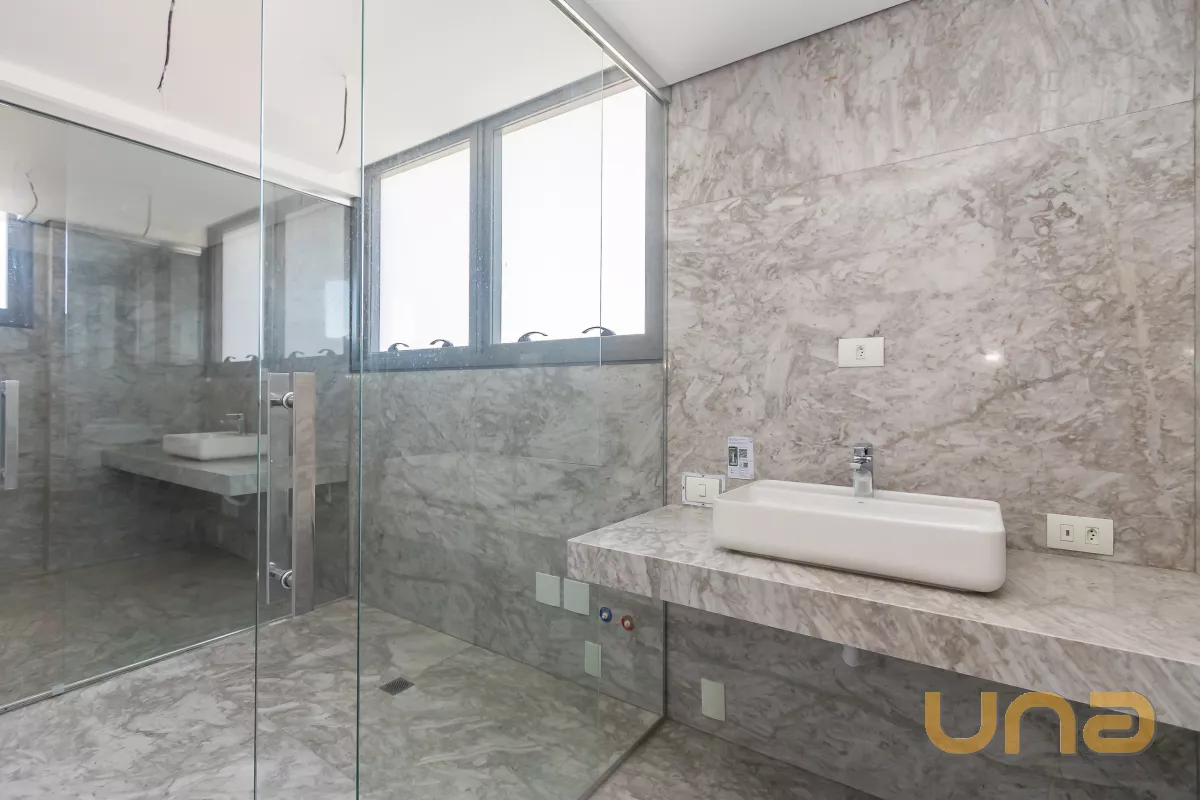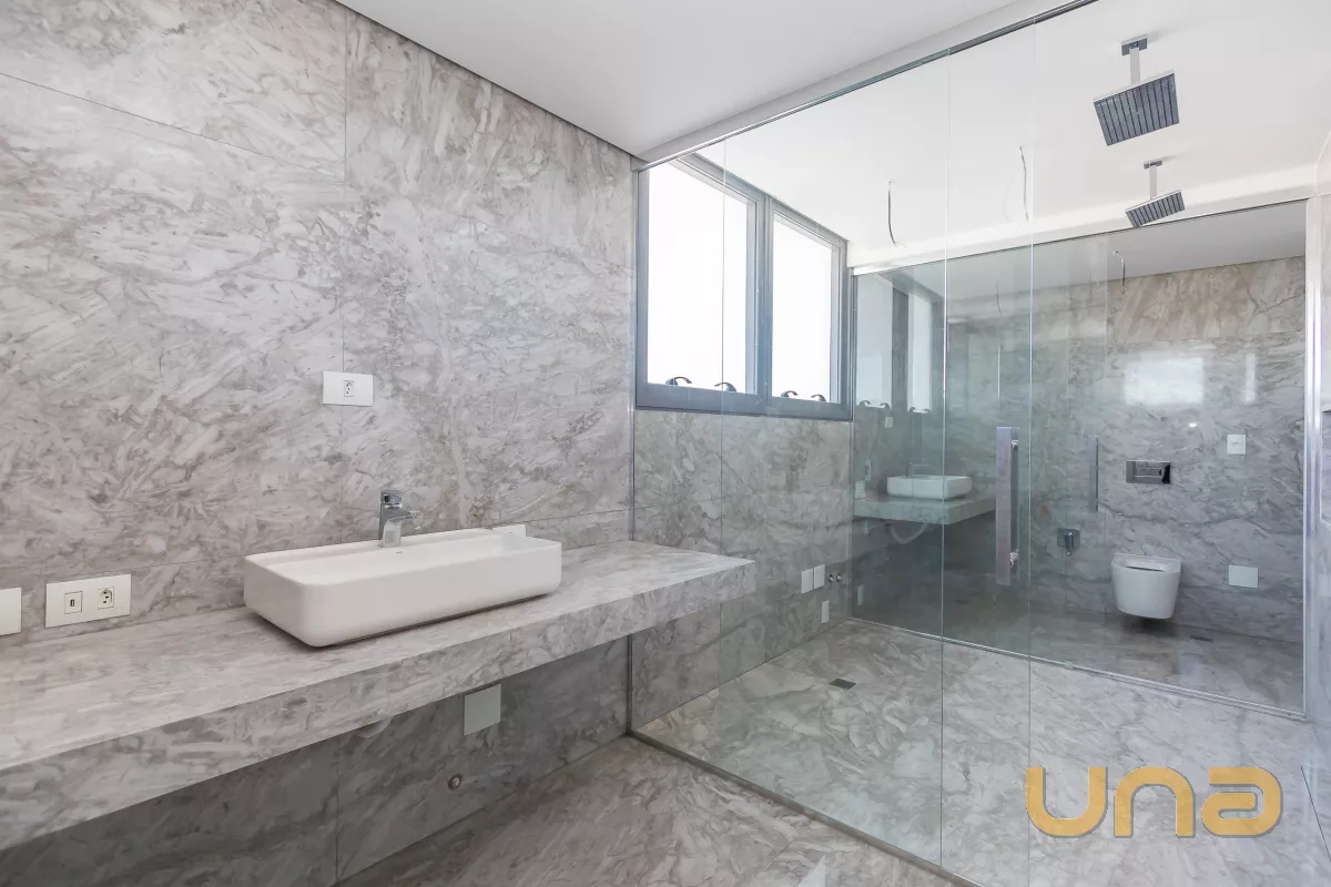 São 4 suítes sendo a suíte master com banheiro Sr. e Sra., ducha dupla e infra para instalação de sauna.