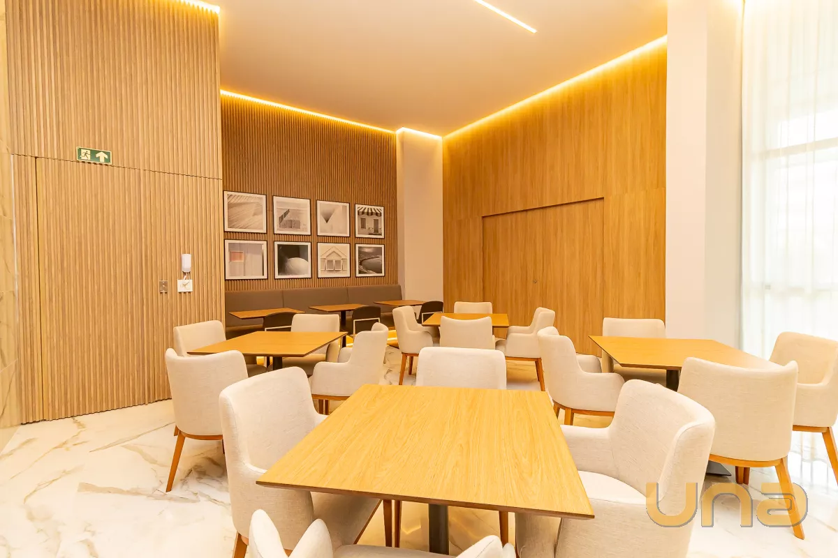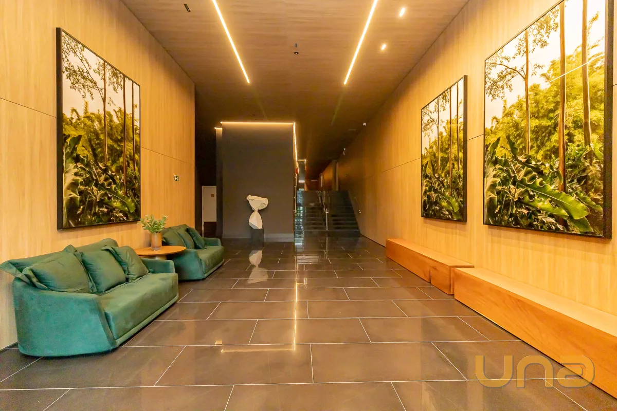 Área social ampla e integrada, com esquadrias do chão ao teto proporcionando maior luminosidade.