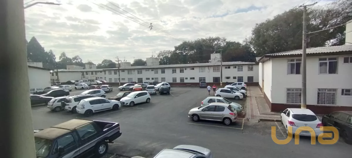 Apartamento Conjunto Buriti, 45,57 m2 de área total, desocupado, Bairro Campo Comprido, em Curitiba, condomínio fechado. Sala, dois quartos, cozinha, área de serviço, uma vaga de estacionamento.