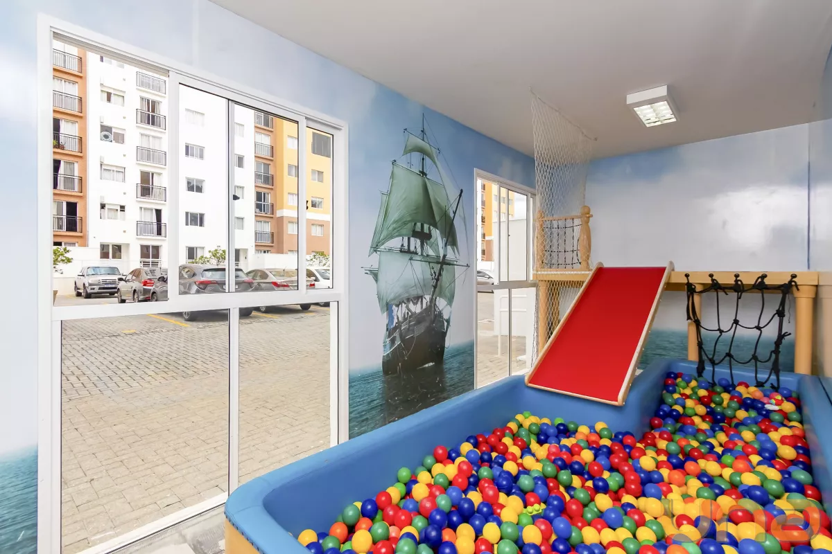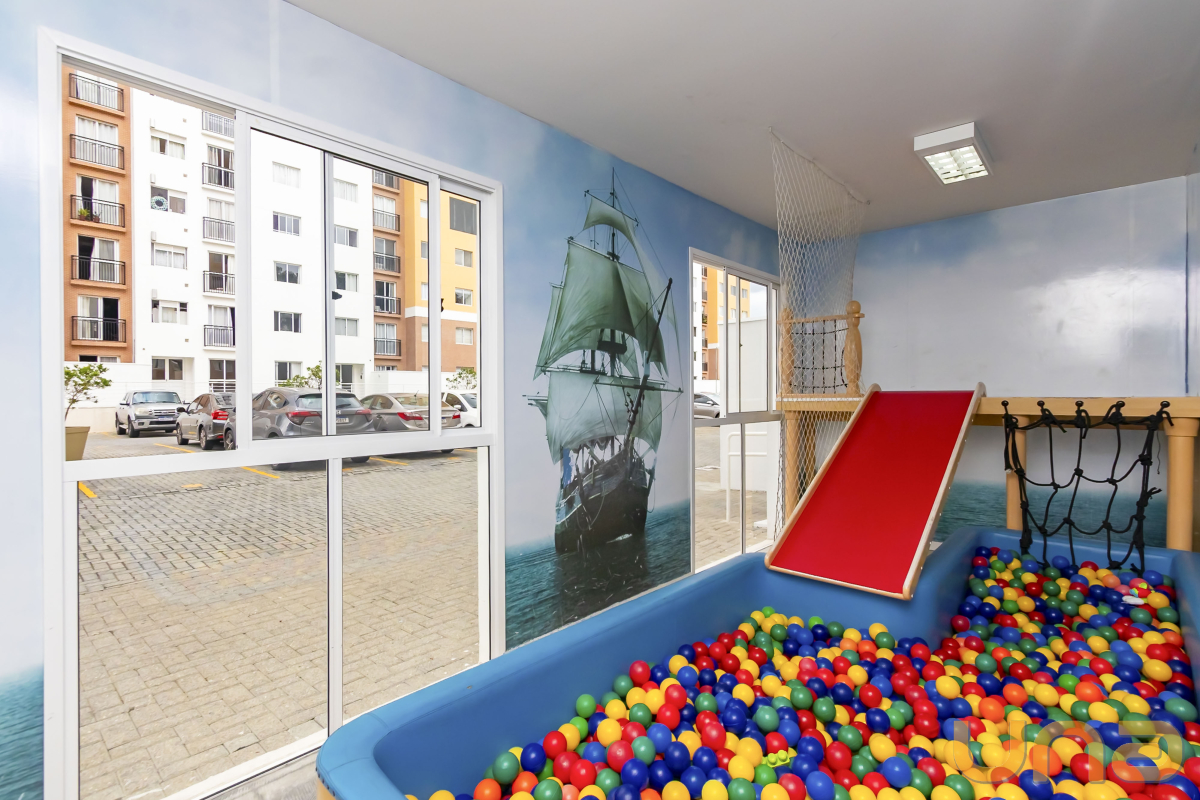 O condomínio oferece uma estrutura completa para o lazer e segurança dos moradores, com playground, cancha de esportes, salão de festas e portaria 24 horas. Além disso, os dormitórios já possuem armários, o que facilita a organização e decoração do apartamento.