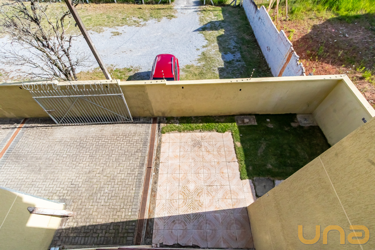 A área externa conta com duas vagas de garagem e um pequeno jardim.