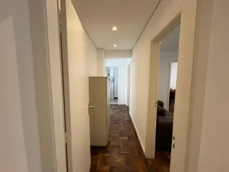 Piso em taco e esquadrias de alumínio.