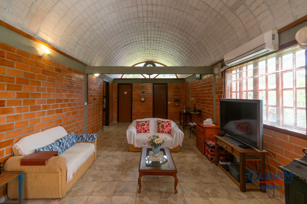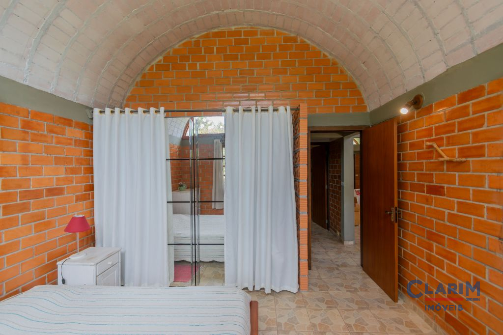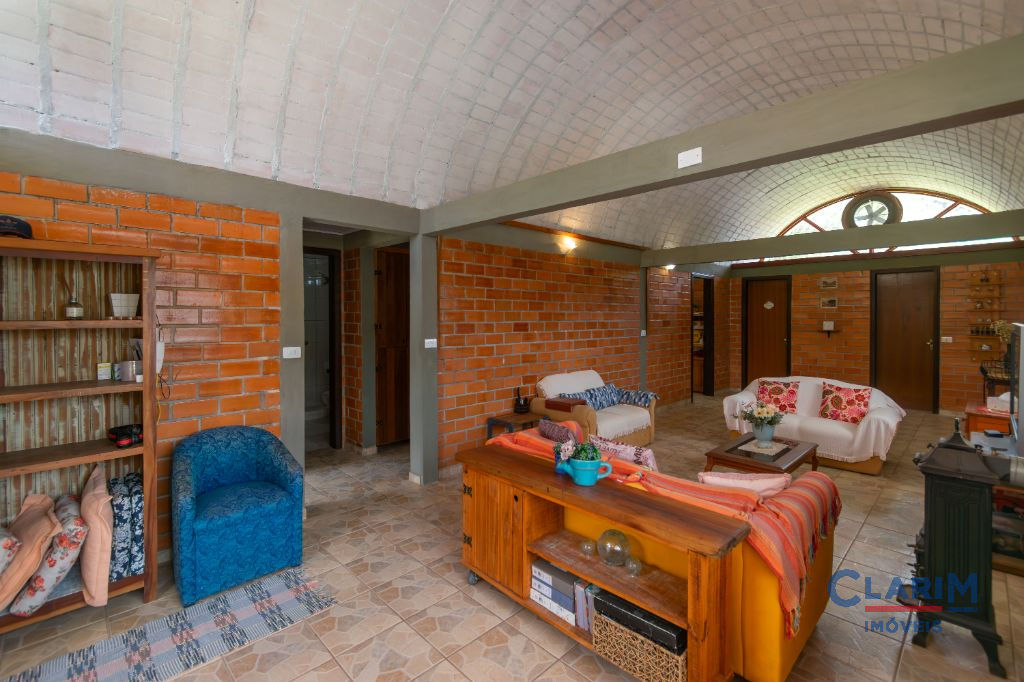 A casa sede, com 161,5m², impressiona pela arquitetura diferenciada com cobertura em abóbadas, integrando charme e beleza. O ambiente é acolhedor, contando com ar-condicionado quente e frio na sala e no quarto principal, além de uma ampla churrasqueira, perfeita para reunir os amigos e família.