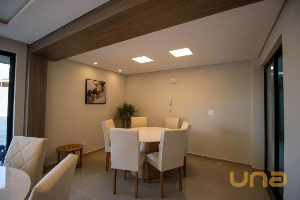 - Espaço de sala de estar e jantar com rack sob medida
