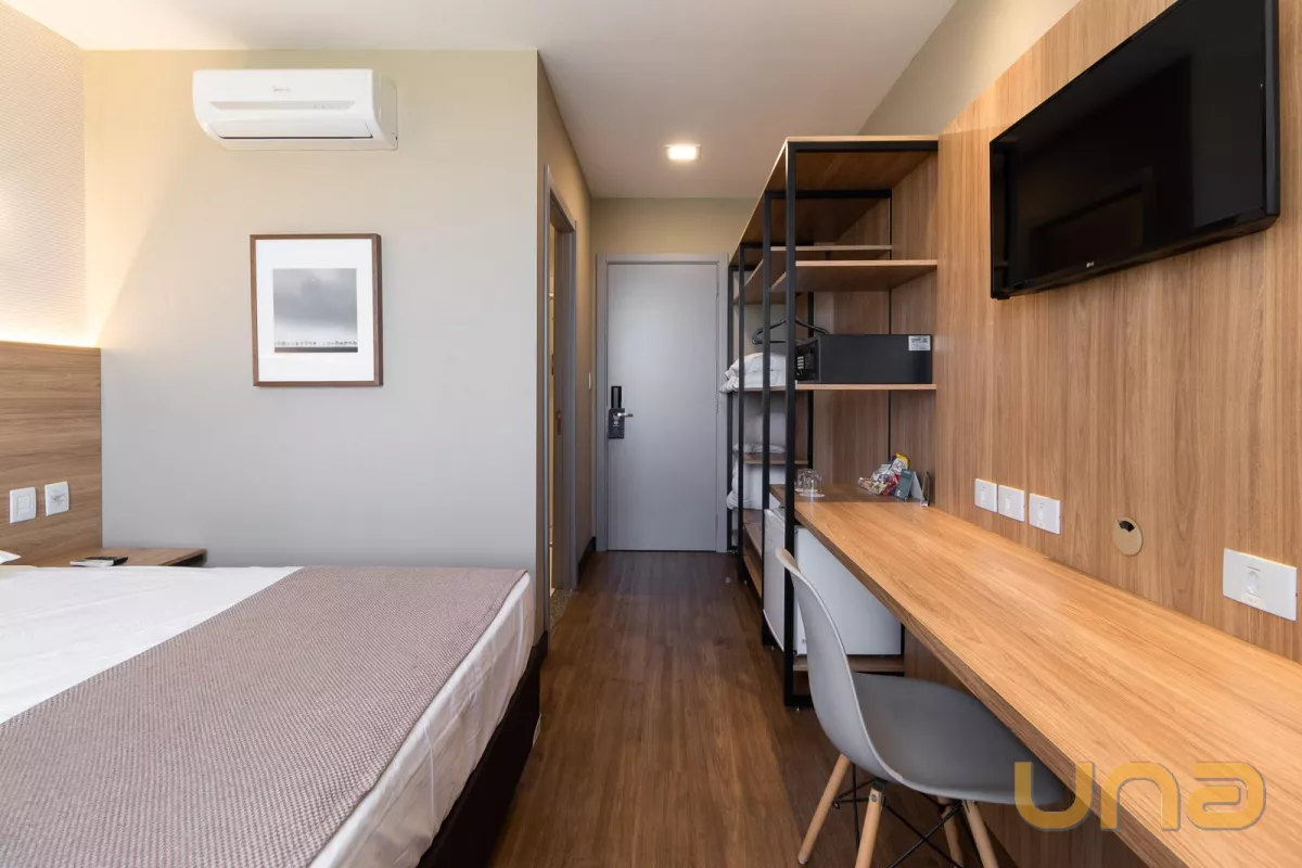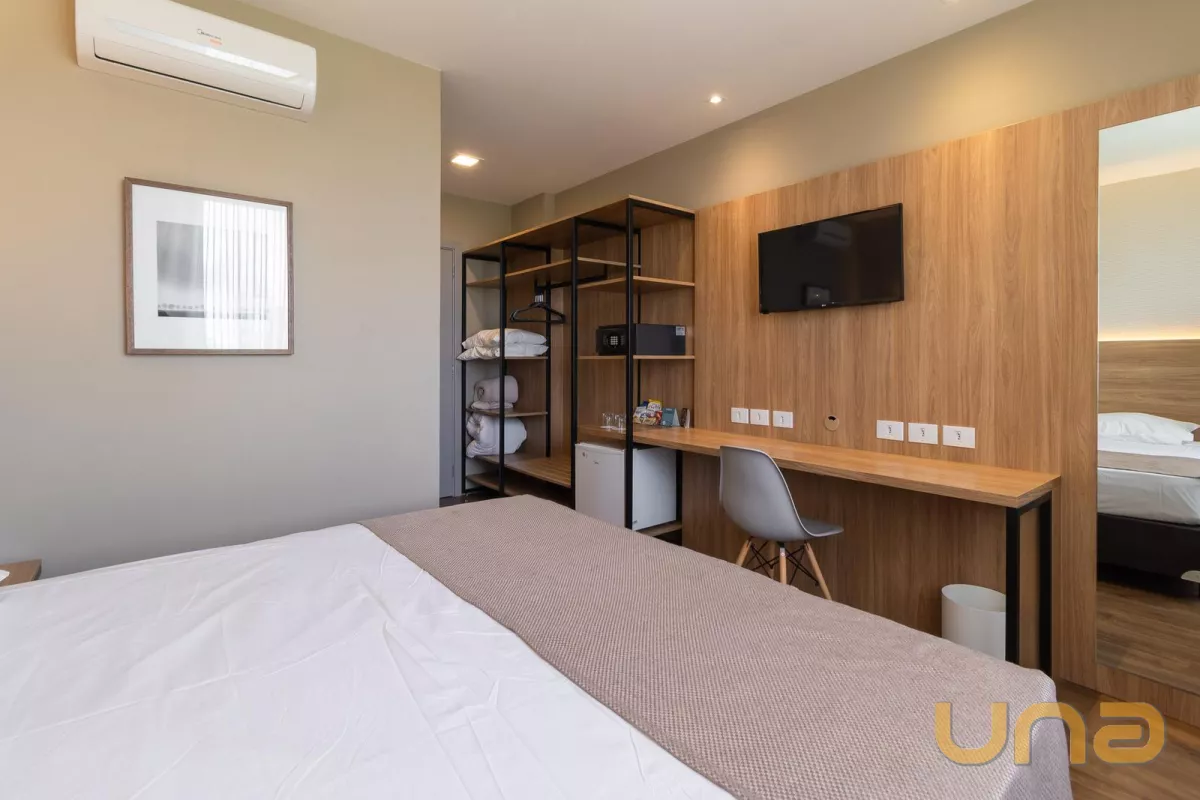 O hotel possui: 3 salas de reuniões/eventos, academia, restaurante para 60 pessoas, 2 vagas para recarregar carros elétricos, 3 elevadores. São 165 unidades/flats no total, portaria 24 horas.