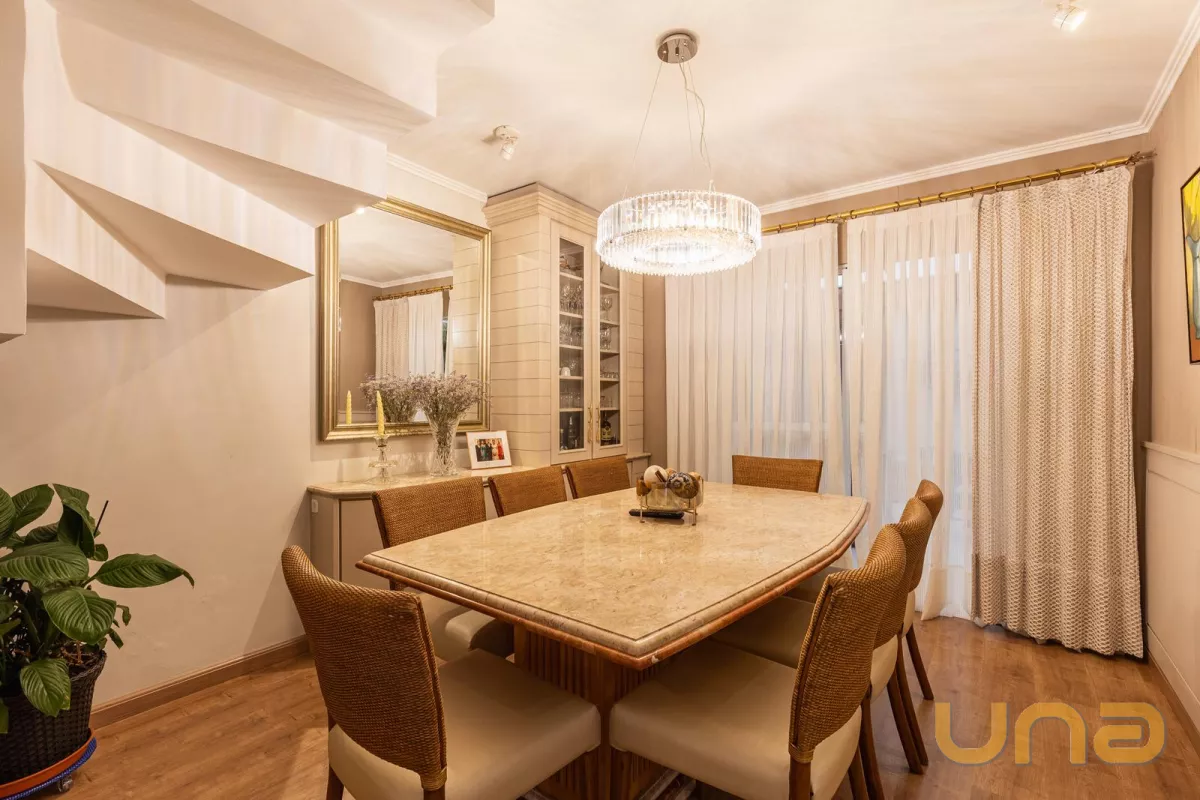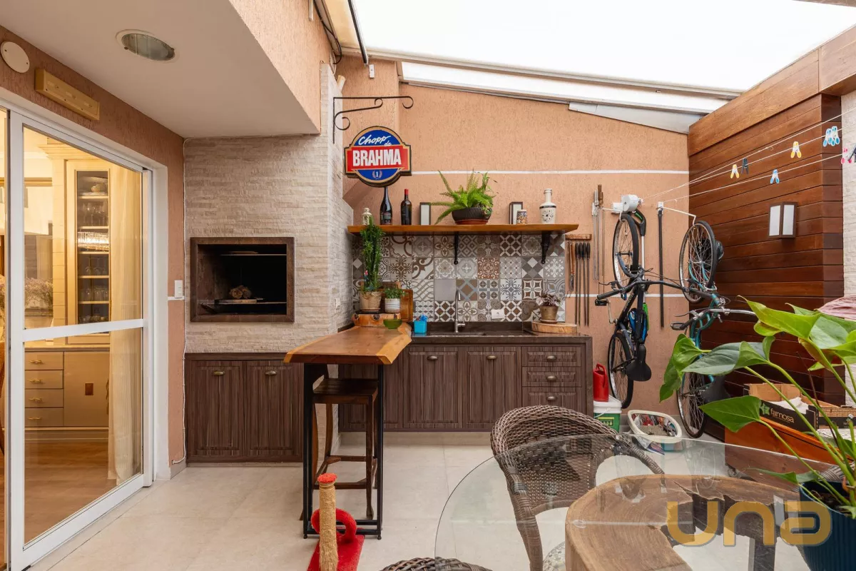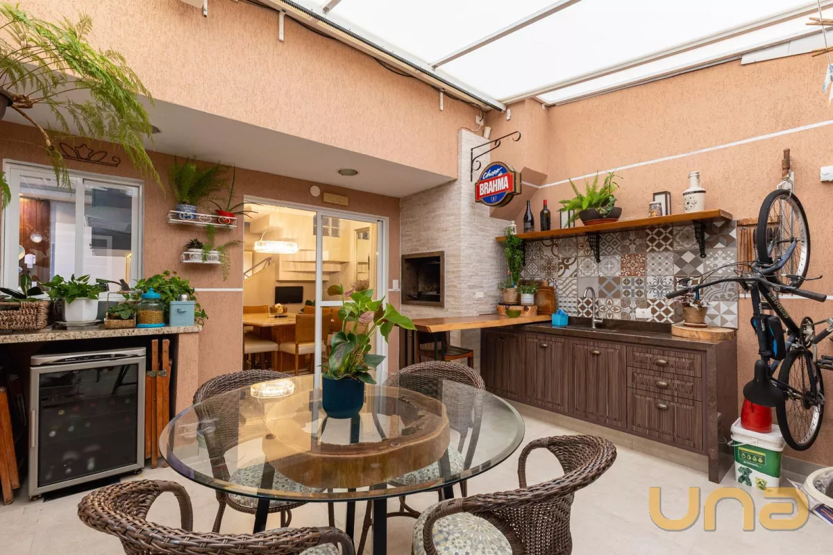Piso térreo - três vagas de garagem, sala para dois ambientes com piso laminado, lavabo, espaço gourmet com churrasqueira a carvão com cobertura retrátil com controle remoto, cozinha com armários e tampos em granito de excelente qualidade, lavanderia com bom espaço.