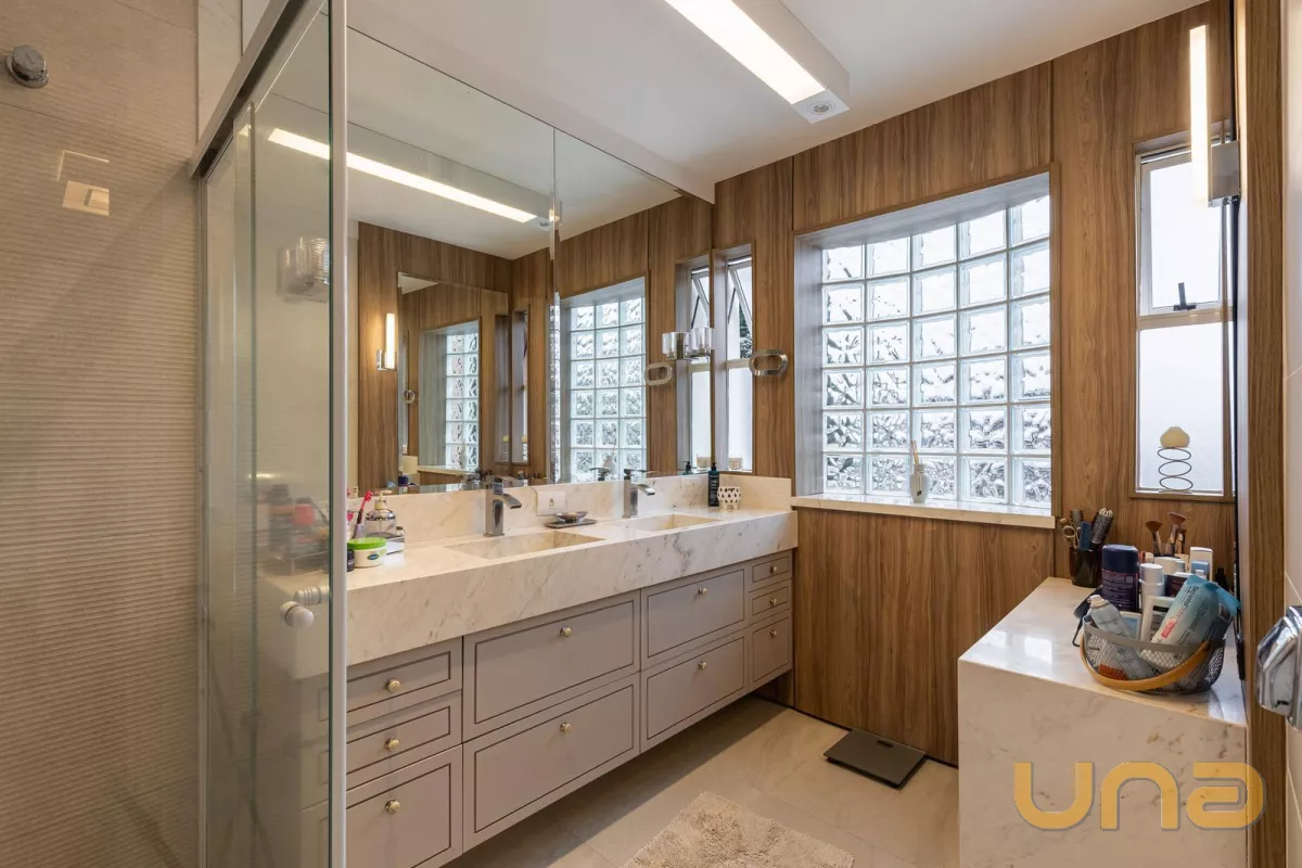 Piso superior - suíte master com armários, sacada, ar condicionado, banheiro com pia com duas cubas, box de vidro. Dois quartos com armários de excelente qualidade, banheiro social com pia em granito, box de vidro.