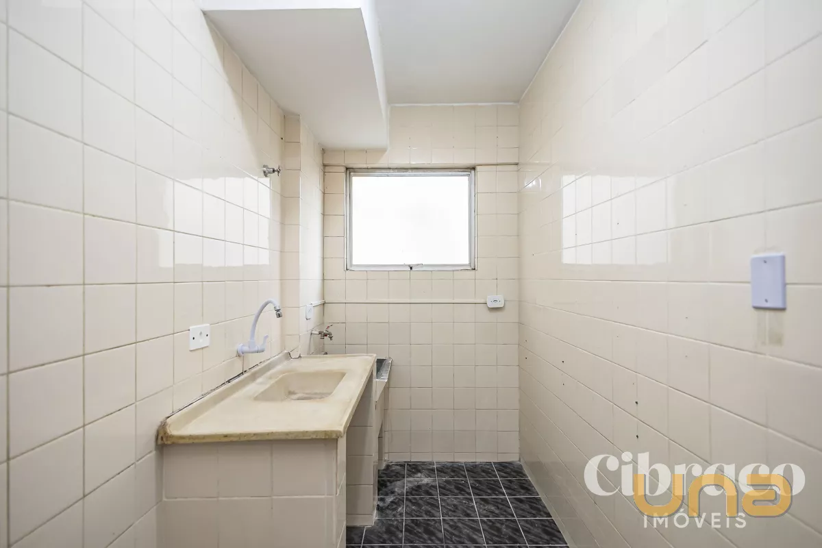 Detalhes: Apartamento com quarto amplo, sala de estar para 2 ambientes, banheiro e cozinha com pia, armário e área de serviço.