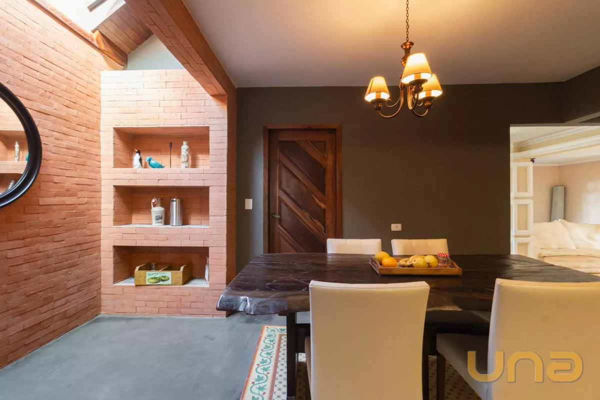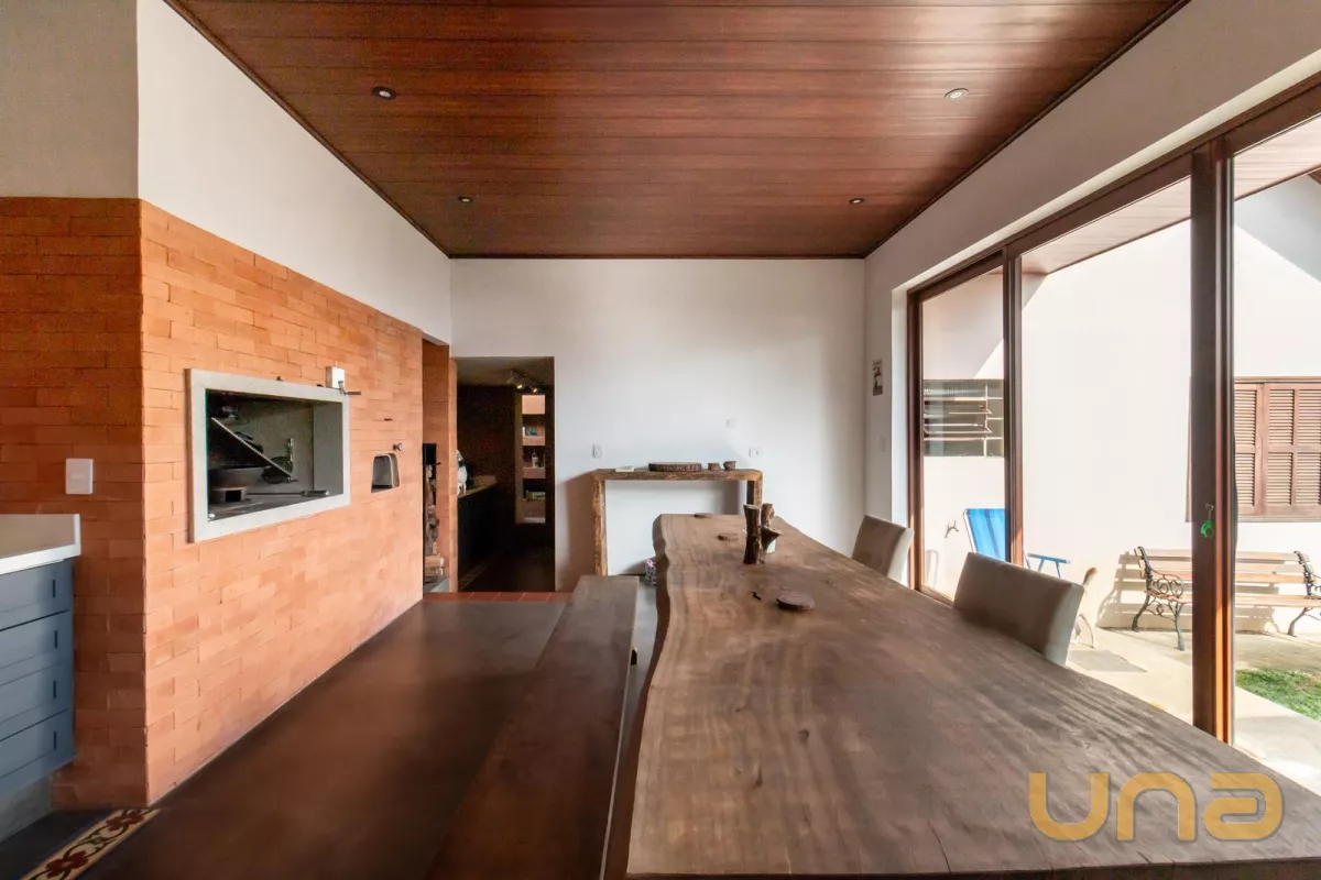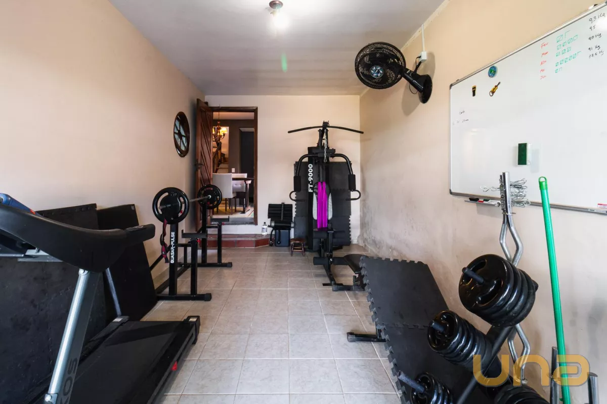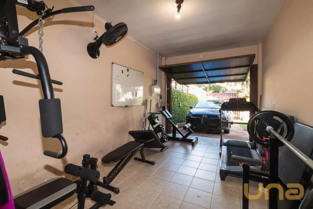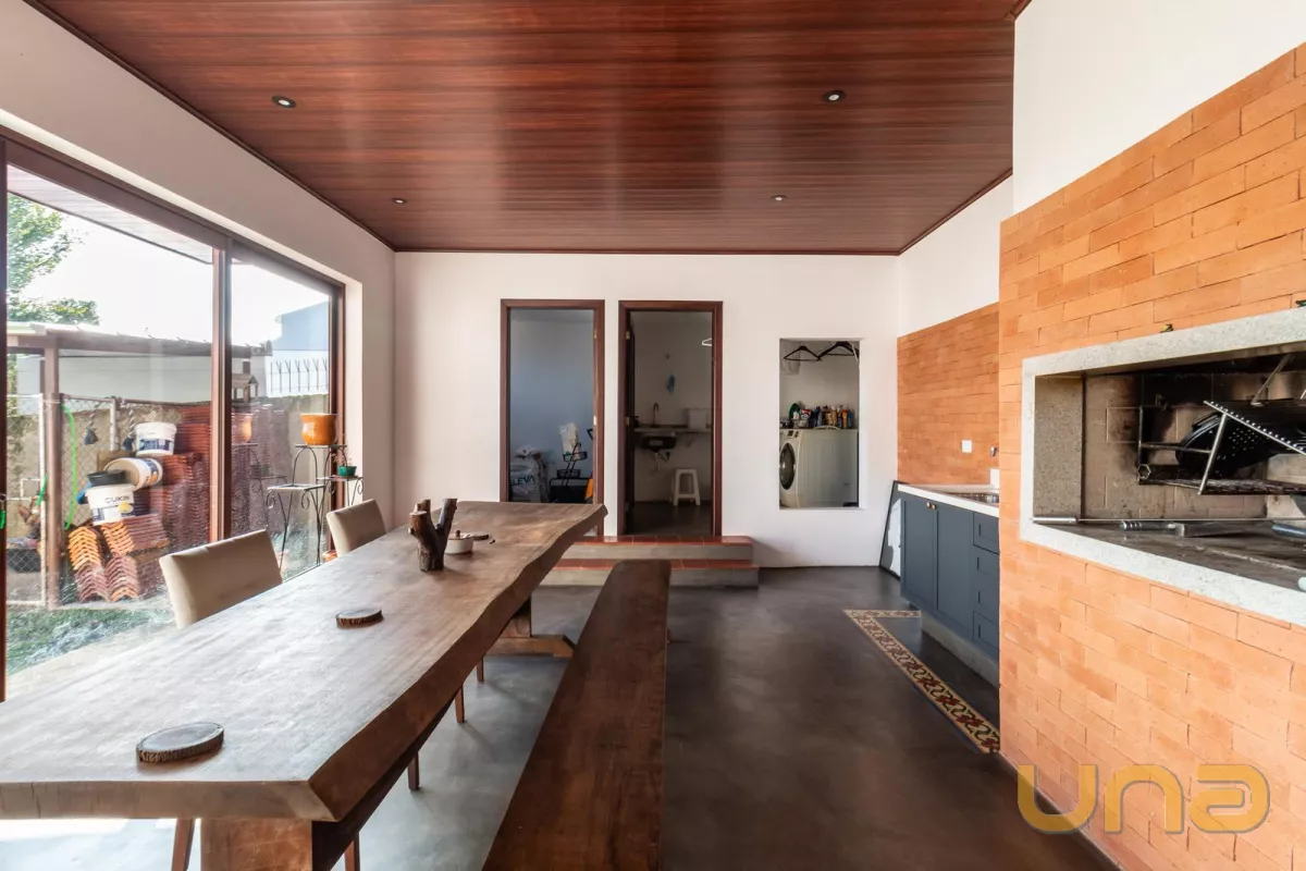 Detalhes: Casa em 2 pavimentos, sendo no térreo: ampla sala para 2 ambientes, lavabo, sala de jantar, a garagem foi transformada em uma pequena academia, 2 quartos, cozinha toda com armários e pedras de silestone brancas, fogão de indução, área gourmet (ampliação de 30m²) com churrasqueira, forno de pizza, pia, armários, despensa, área de serviço e canil. Na parte superior, mais uma sala ampla com lareira, sacada, um quarto com banheiro (suíte).