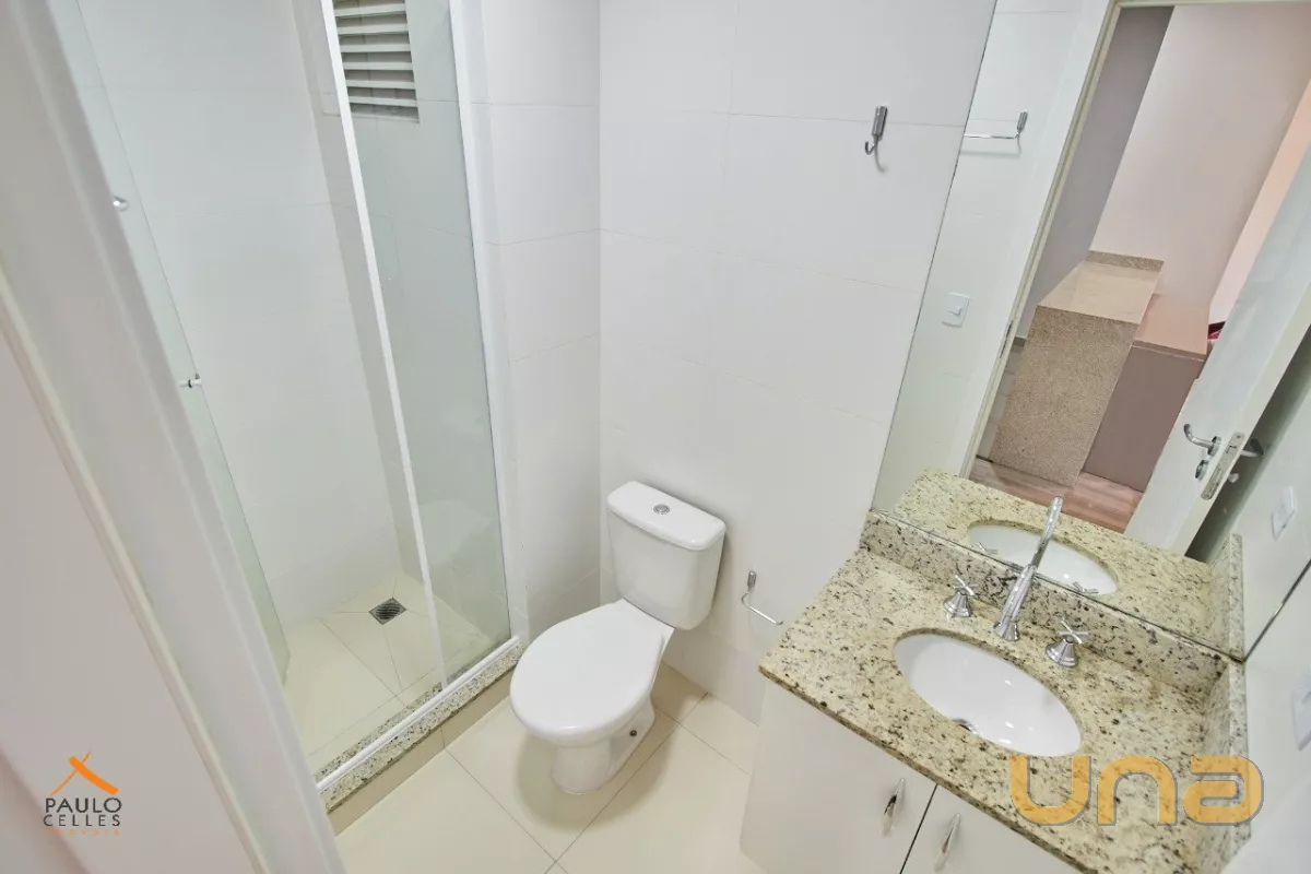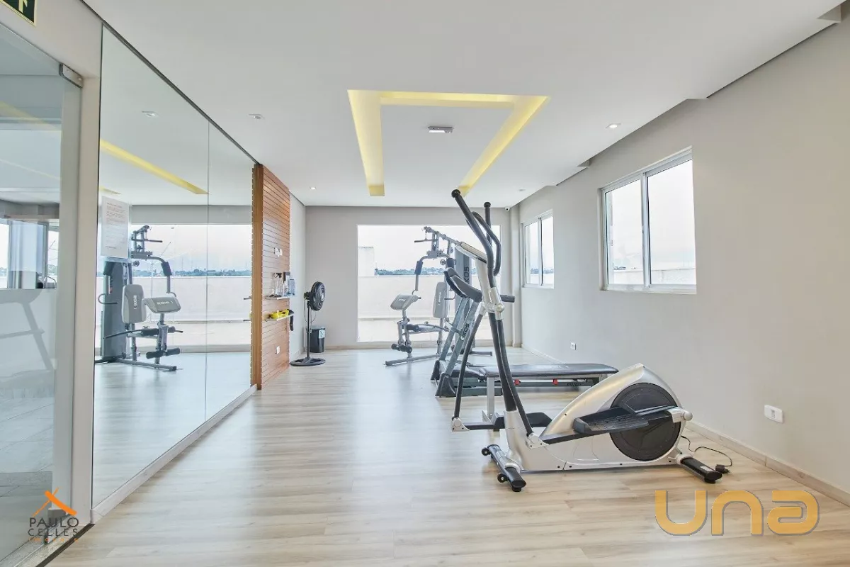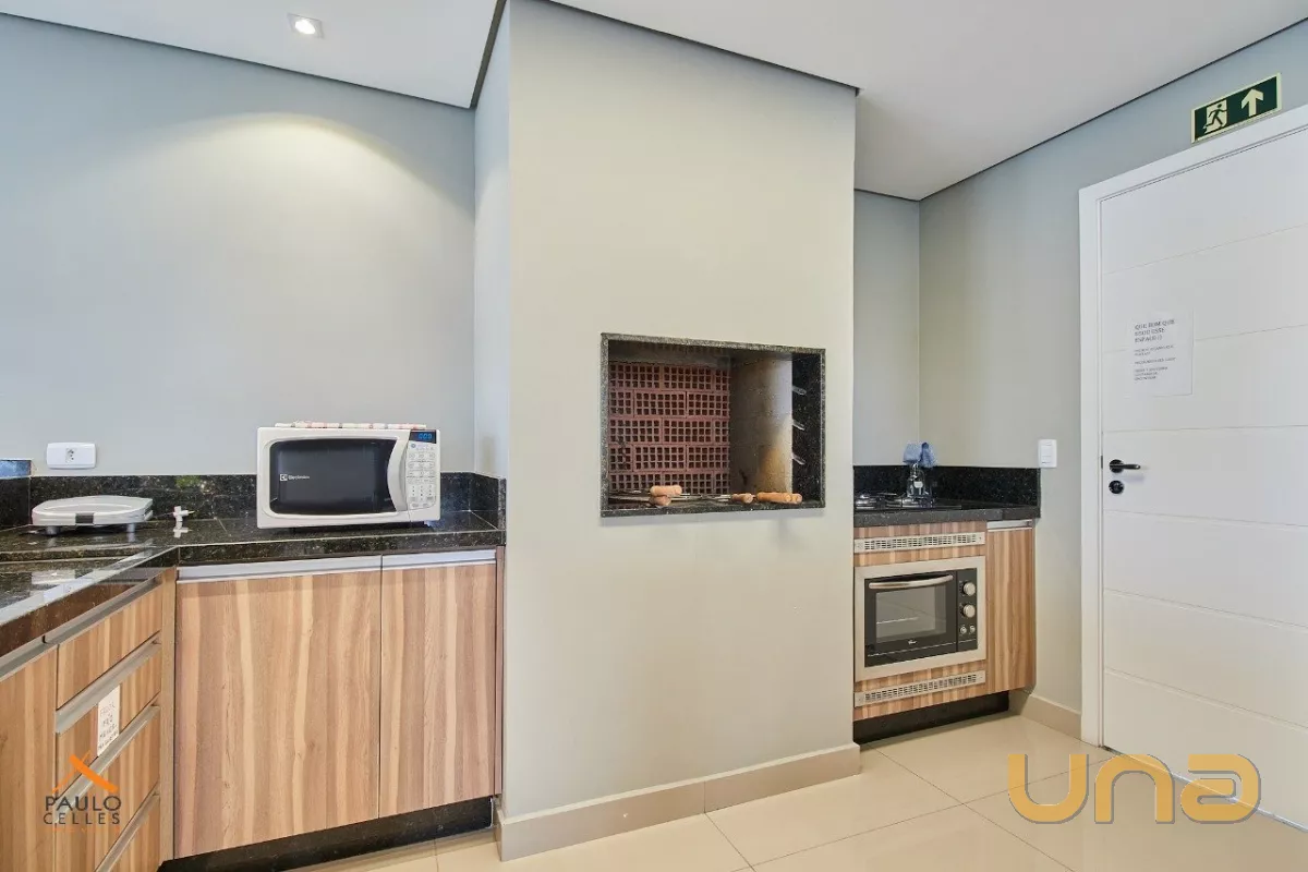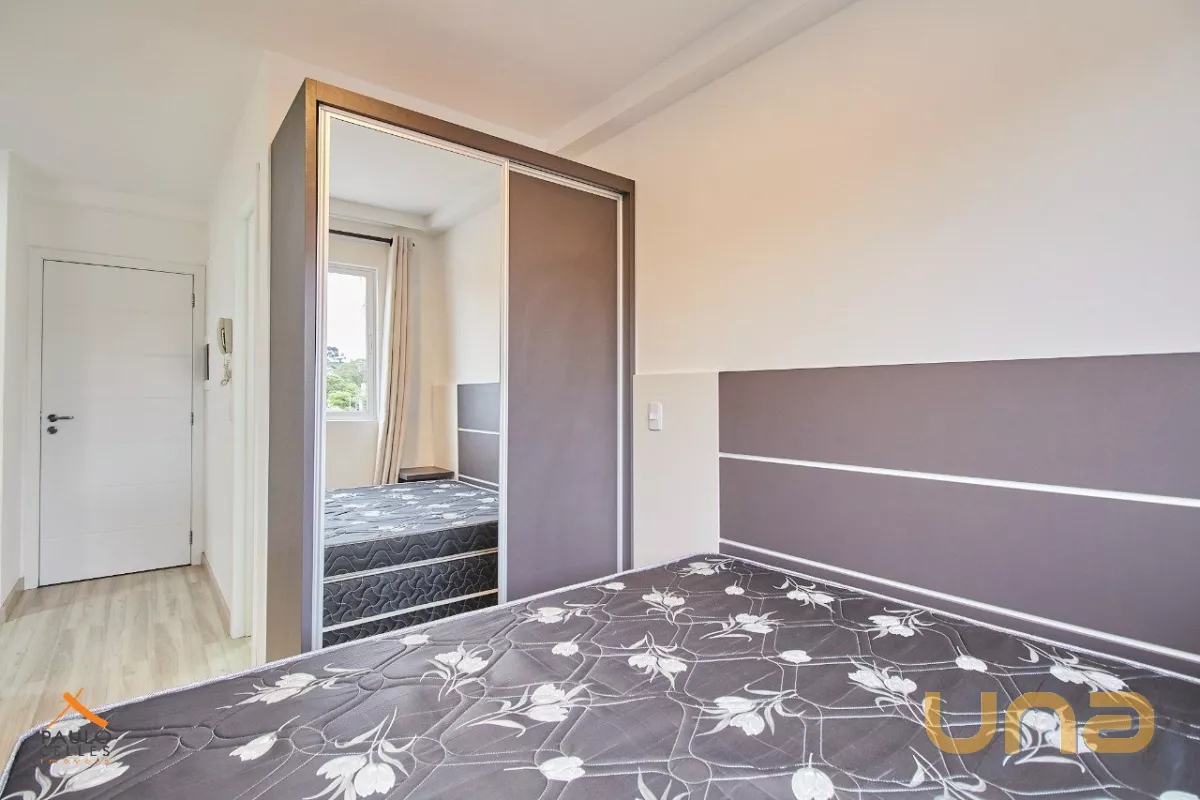 O apartamento possui 1 dormitório conjugado com a sala, cozinha com armário, cooktop e geladeira, além de sacada, área de serviço e banheiro com armários e box.