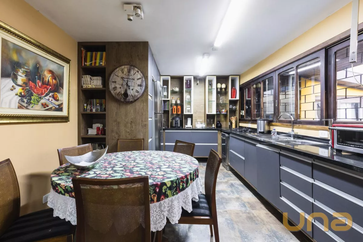 Detalhes: Casa com 241,24m² num terreno de 502,81m², tendo duas frentes em excelente localização, rua calma, acesso rápido ao Centro, Linha Verde, BR 277 litoral e Pinhais. A poucos metros da Av. Victor Ferreira do Amaral com seus restaurantes, supermercados, farmácias, panificadoras, academias e postos de combustíveis. Próximo ao Colégio Militar de Curitiba, Hospital das Nações e Jockey Plaza Shopping. Composta por 2 quartos, 3 suítes, 2 salas, 1 banheiro social, 2 lavabos, 2 cozinhas, área de serviço, garagem coberta para 3 carros.