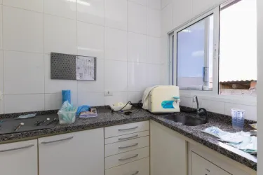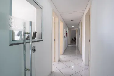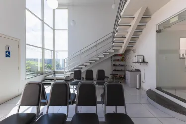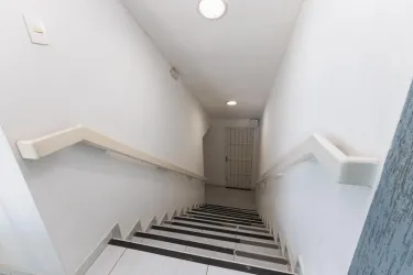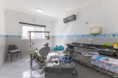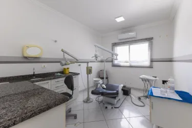 O imóvel possui 9 salas e 5 banheiros no total. Na parte térrea, conta com uma ampla recepção, 2 banheiros (masculino e feminino), 6 salas, banheiro social, piso em cerâmica e ar-condicionado. No piso superior, há mais 2 salas e 1 banheiro para funcionários, com escadas em granito. Na parte inferior, dispõe de sala, cozinha, depósito e banheiro de serviço.