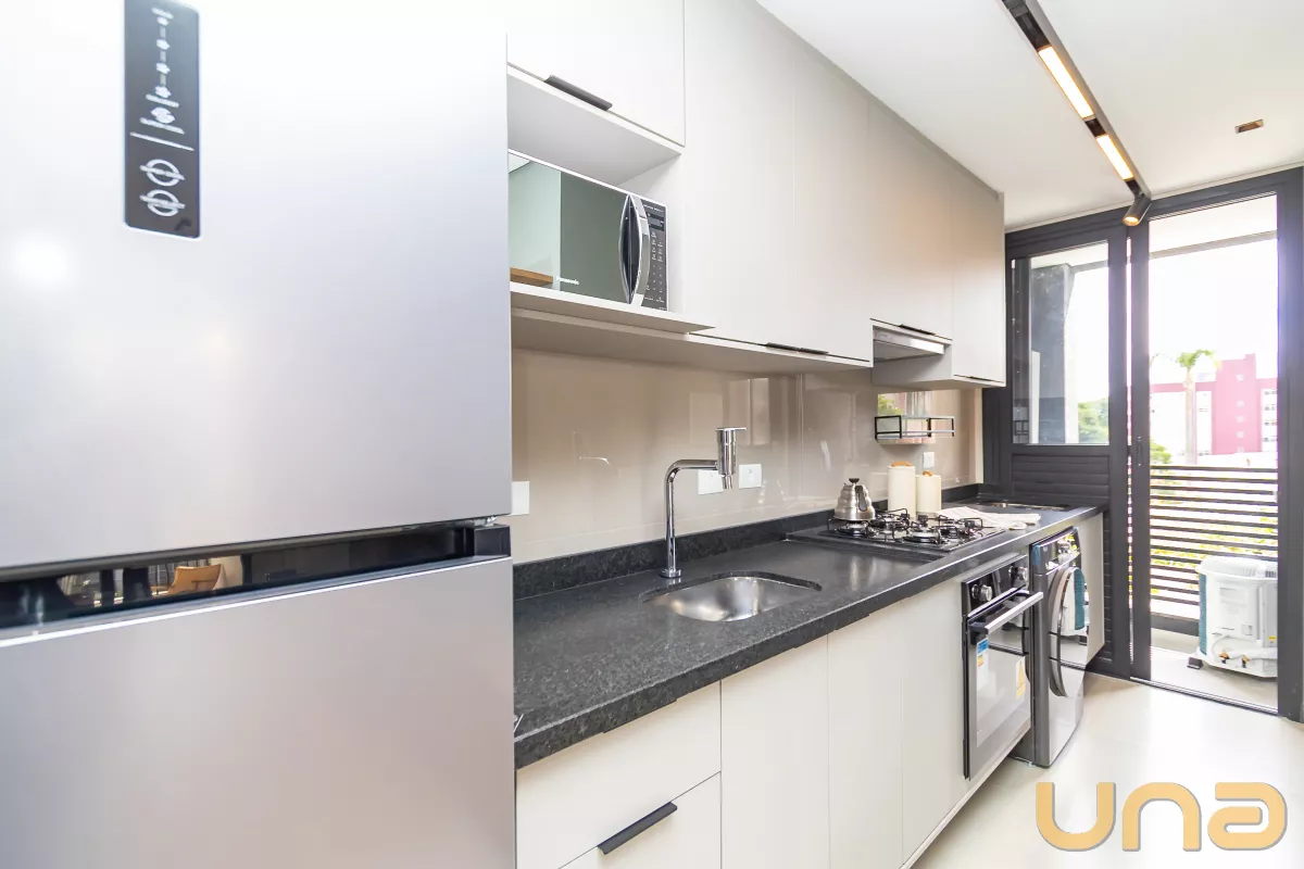 Apartamento com 2 dormitórios, sendo 1 suíte, sacada com churrasqueira, cozinha em conceito aberto e sala para dois ambientes.