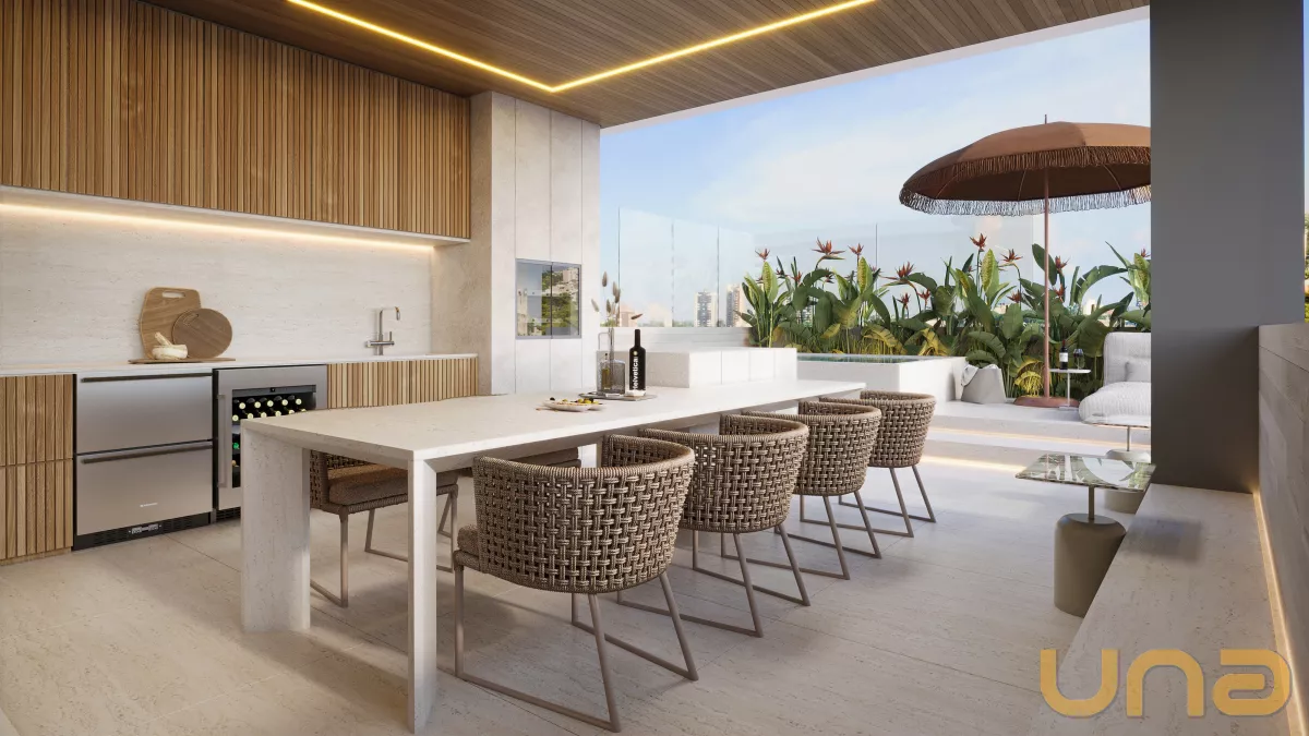 Cobertura duplex com 167,9m² de área privativa, além de um terraço exclusivo de 53,81m². Possui 3 suítes com piso laminado, sala ampla para dois ambientes com infraestrutura para instalação de som ambiente e varanda gourmet com churrasqueira a carvão.