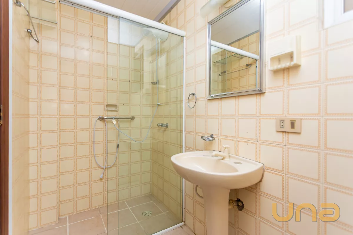 Banheiro social com box em vidro;