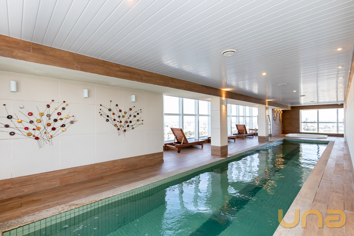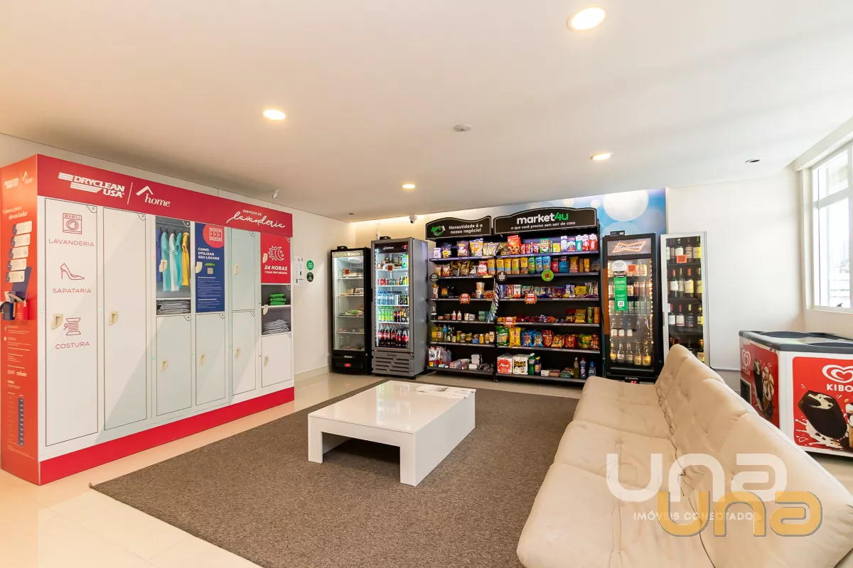 O condomínio oferece portaria 24 horas e estrutura de lazer completa, sendo espaço gourmet, salão de festas com terraço descoberto, piscina coberta e climatizada, espaço fitness, spa com vista de 360º da cidade, lavanderia, salão de jogos e cinema.