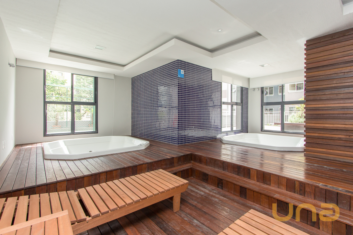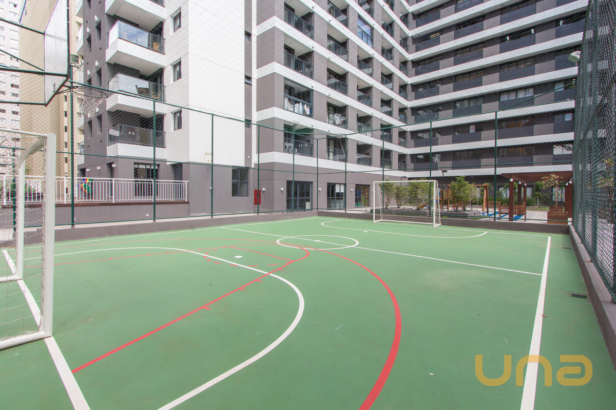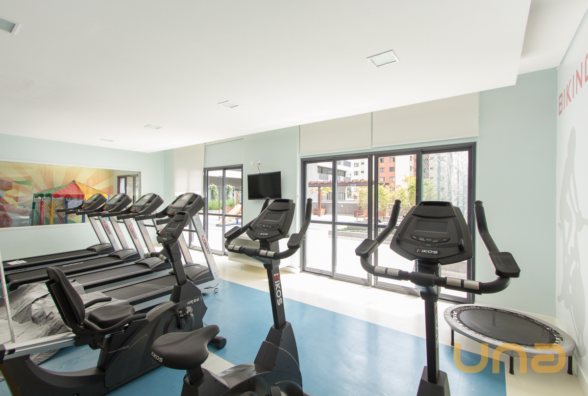 Academia, bicicletário, churrasqueira, espaço gourmet, lavanderia coletiva, mercadinho, jardim, portaria 24h, playground, pista de caminhada, quadra esportiva, sala de jogos, salão de festas, sauna, spa, piscina e sistema de segurança.